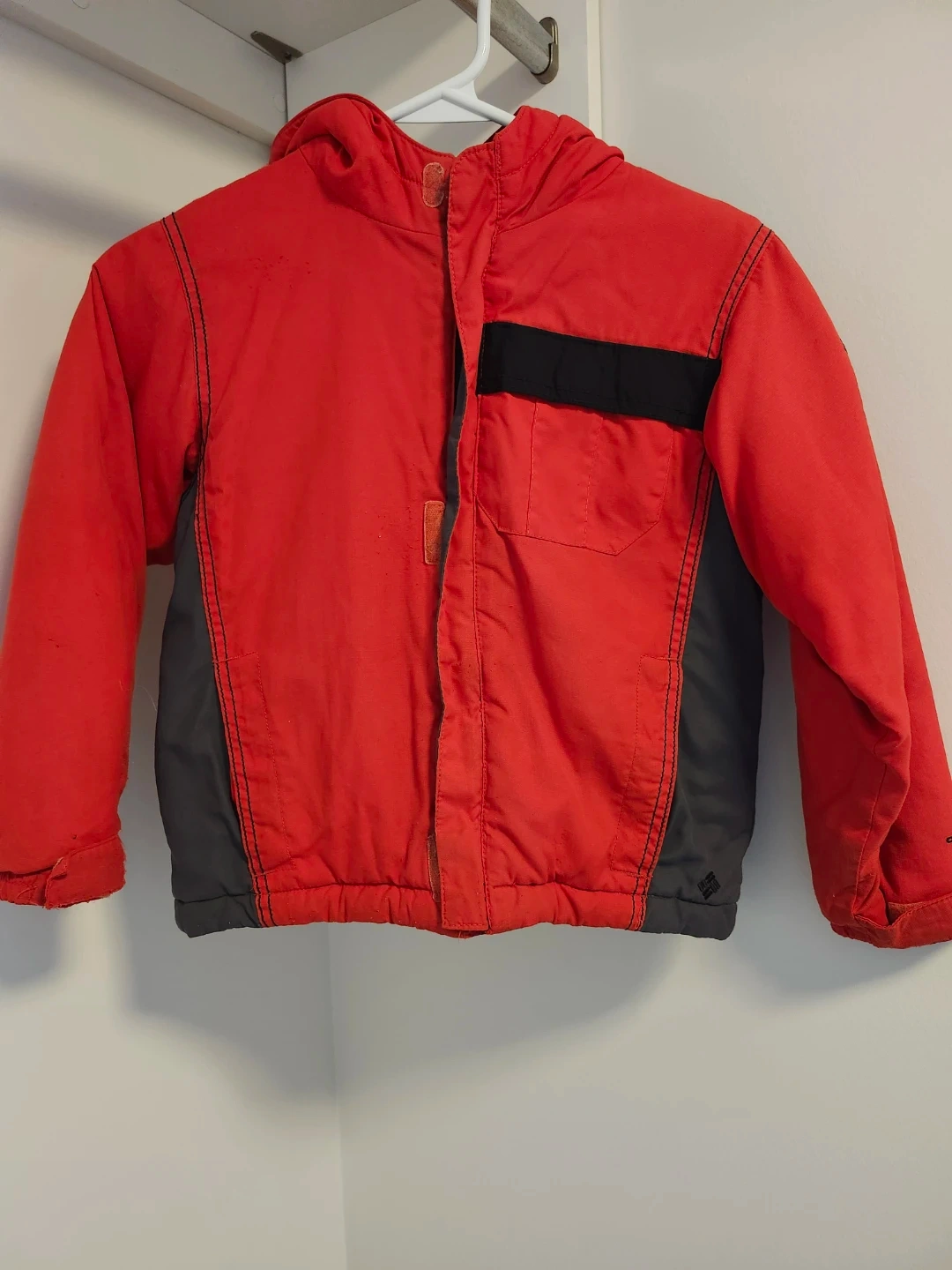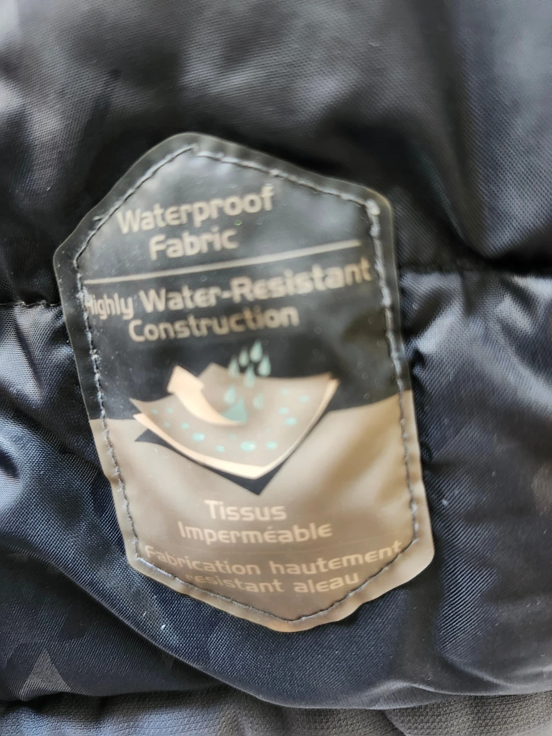 Cozy lined and water repellant jacket for winter and early spring days. In good condition, but missing the top part of the 3 velcro strips beside the zipper (not necessary anyways but would be an easy fix). Freshly laundered.
