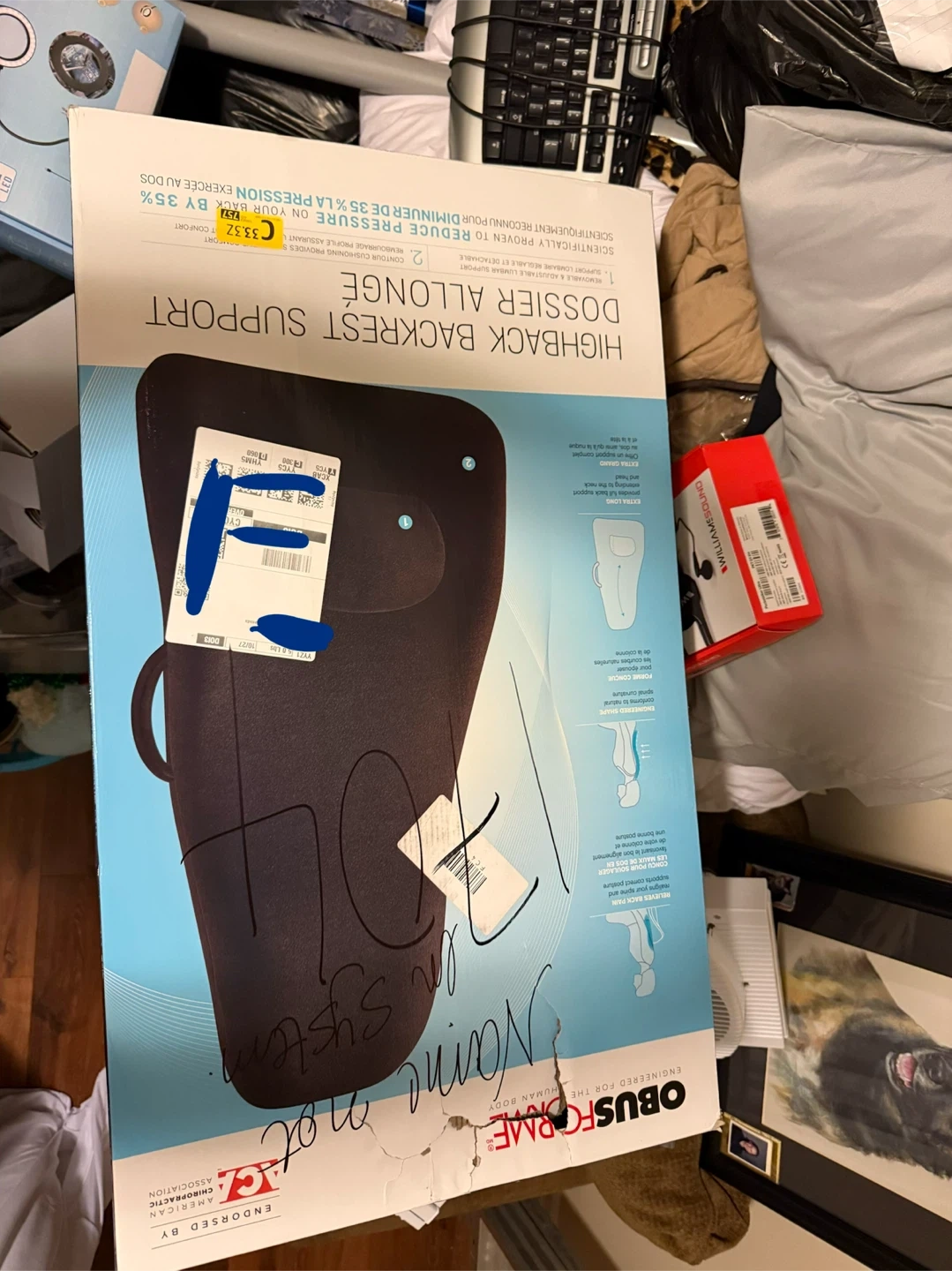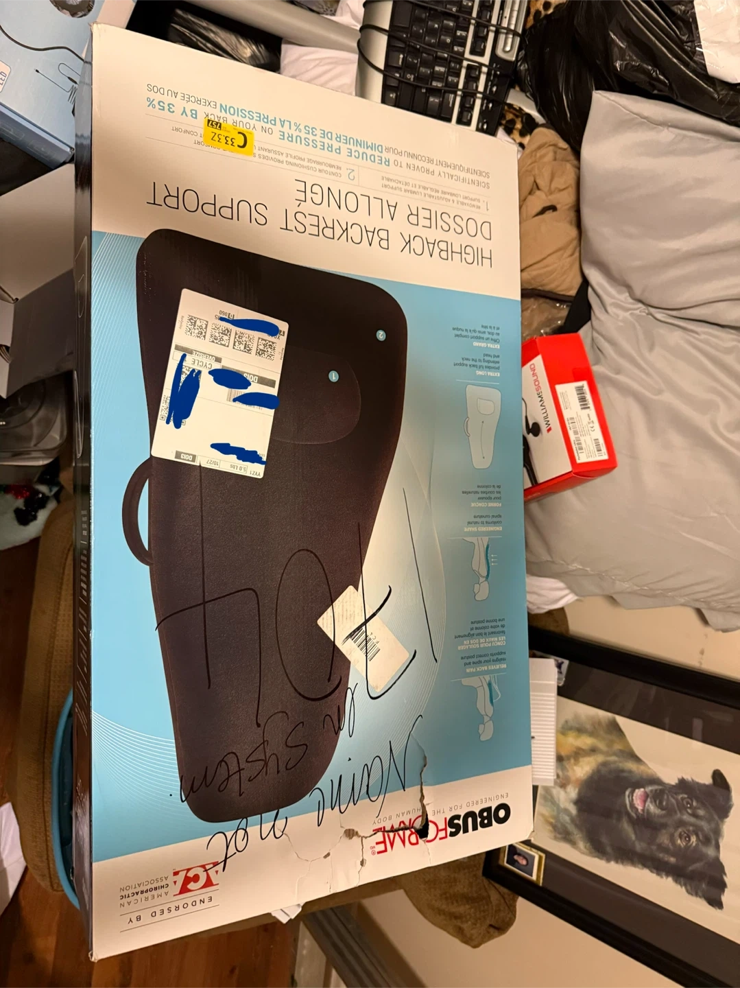 Selling an ObusForme Highback Backrest Support. It is designed to reduce pressure on your back by 35%. It features removable and adjustable lumbar support and contour cushioning that provides supportive comfort. This backrest support is engineered for the human body and endorsed by the American Chiropractic Association