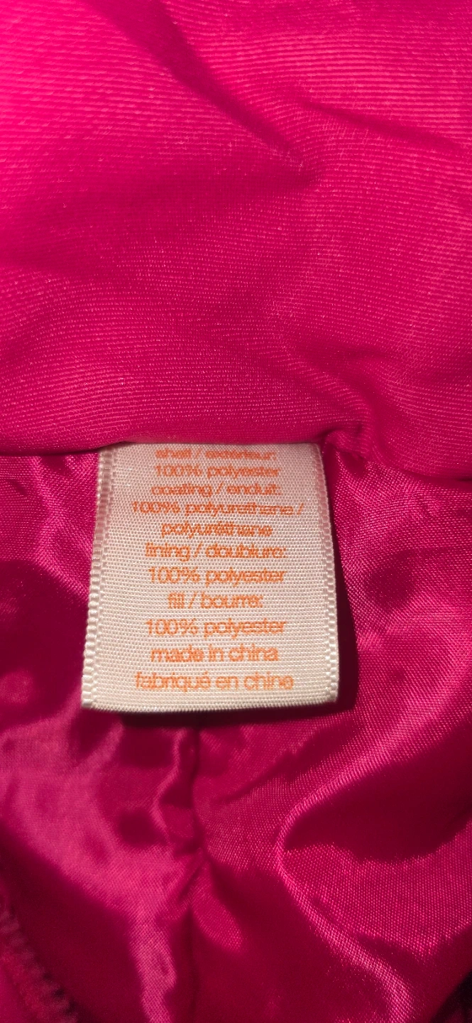 The outer shell and lining are made of 100% polyester, and the fill is also 100% polyester.