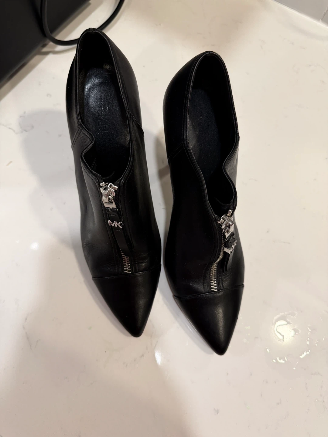 Selling a pair of Michael Kors black leather boots. They have a zipper detail in the front. Great for dressing up or down!