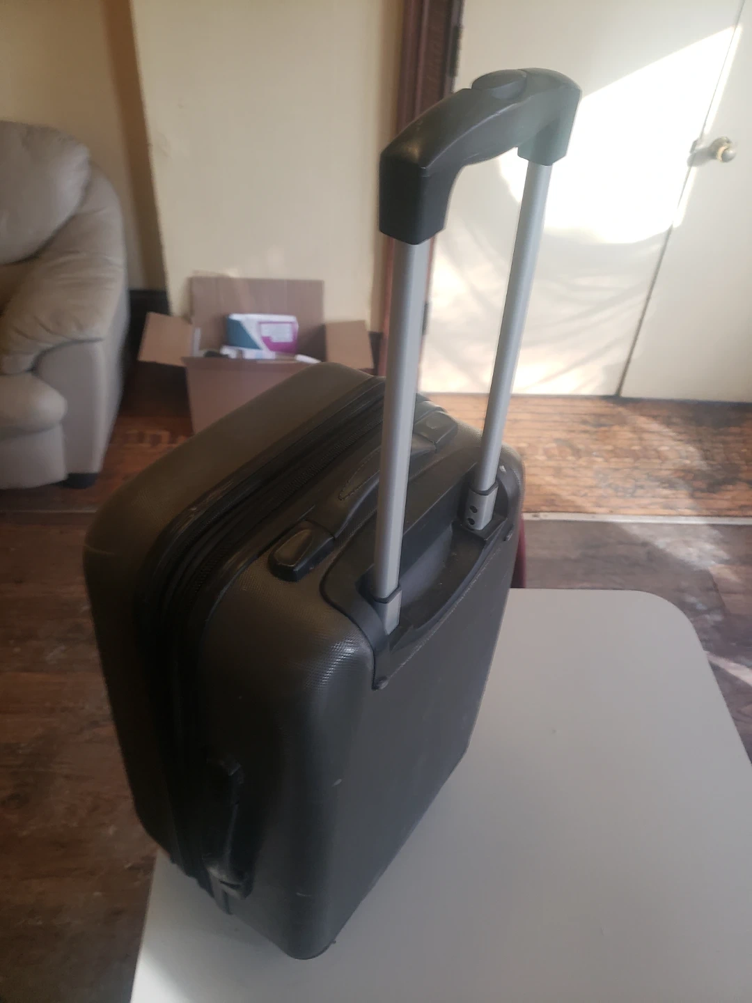 Selling an Air Express carry-on suitcase. It's in good condition and ready for your next trip! It has a retractable handle and wheels for easy transport