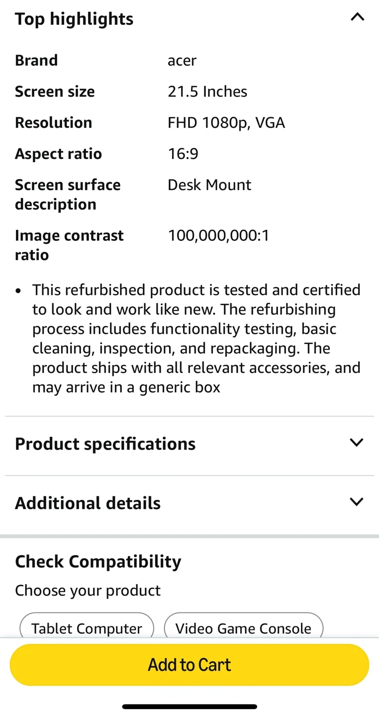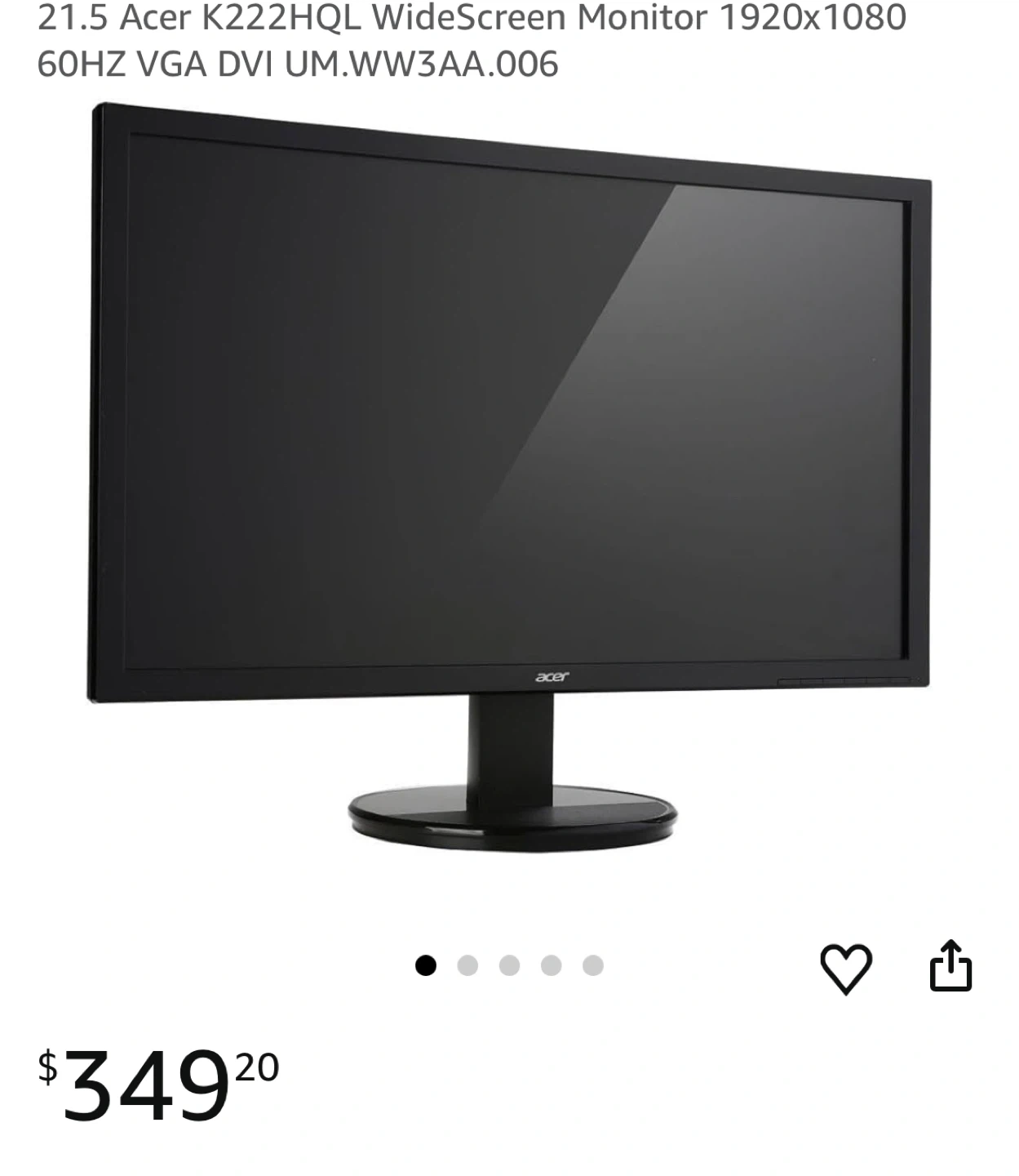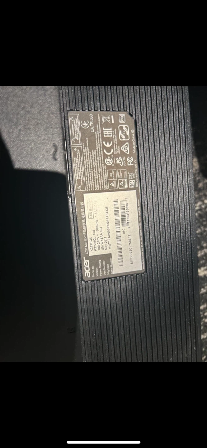 Selling an Acer K222HQL monitor.