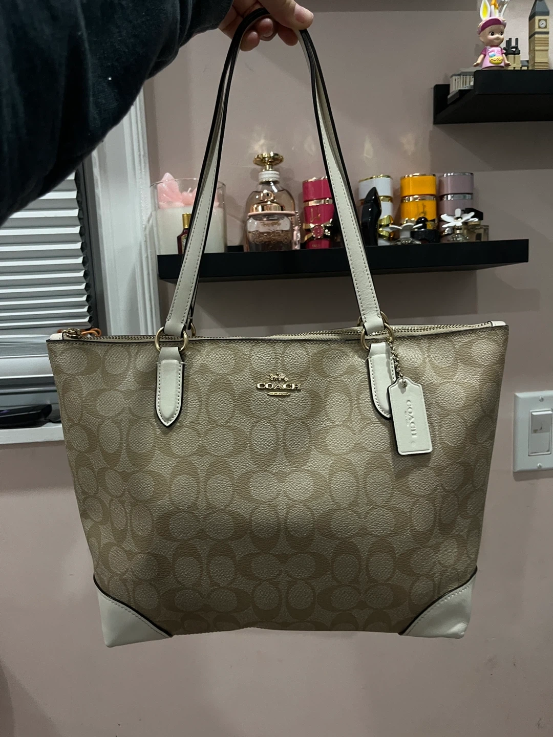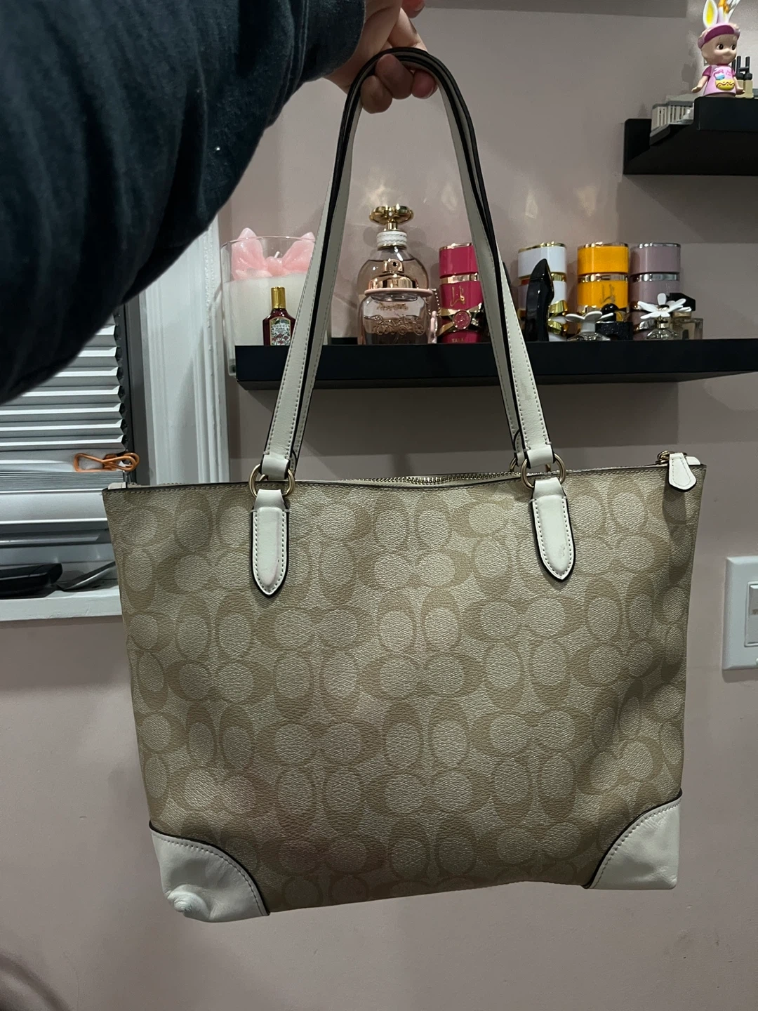 Selling a Coach Signature Tote Bag. I can deliver for an extra charge depending location. It's in great condition and perfect for everyday use. The bag features the classic Coach signature pattern and has a spacious interior. It's a stylish and practical accessory!