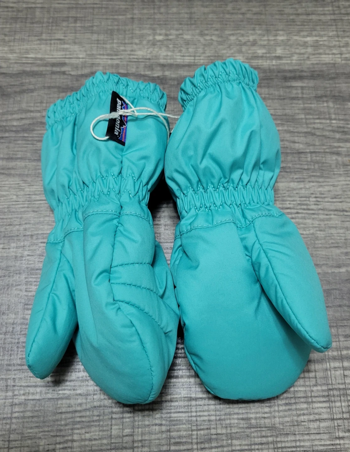 These adorable Patagonia baby mittens are perfect for keeping your little one's hands warm! They are in excellent condition and sized for 0-3 months. The mittens are a cute turquoise color and made from high-quality materials to ensure comfort and warmth.