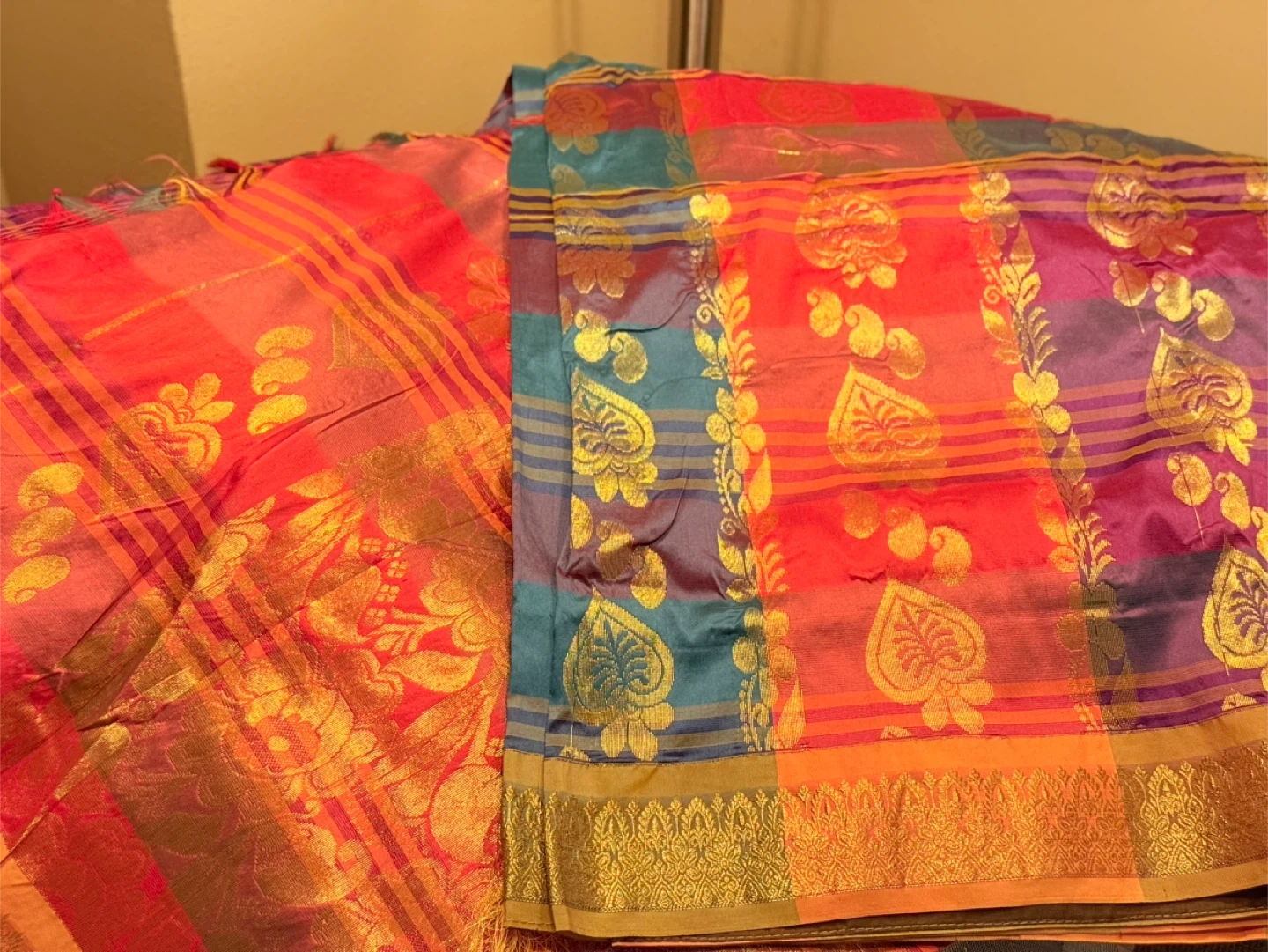 Selling a collection of beautiful Indian sarees with intricate designs. These sarees feature a variety of colours and patterns, perfect for special occasions or adding a touch of elegance to your wardrobe. The materials vary, offering a range of textures and drapes. They are in great condition and ready to be worn and enjoyed!