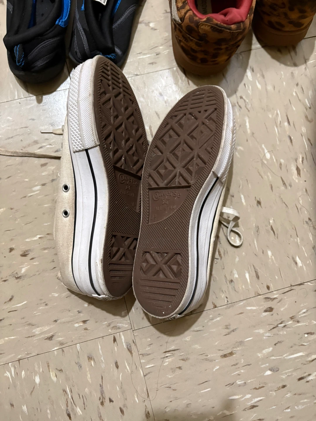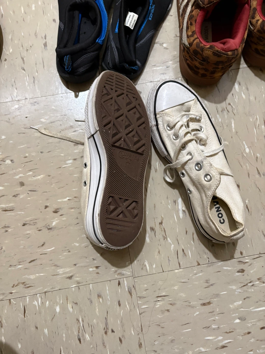 Free a pair of Converse All Star low top sneakers! They're a classic style and in a versatile off-white color. Perfect for everyday wear and in good condition