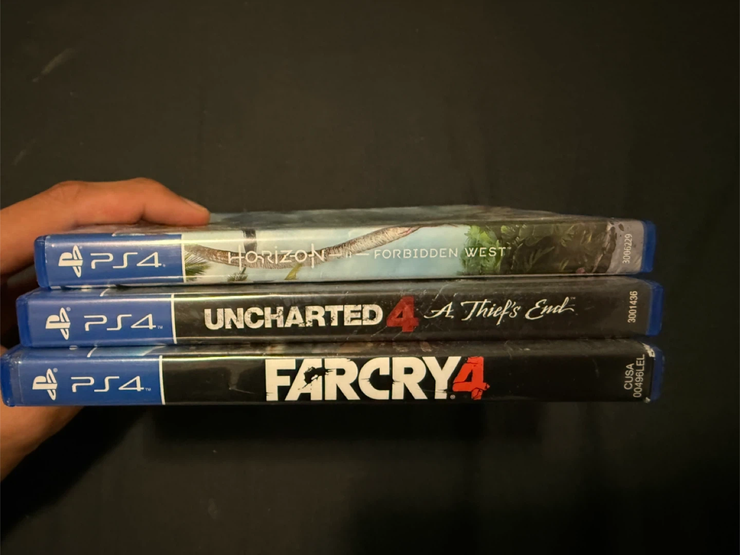 Selling a used PS4 console in good condition. Includes a controller and the following games: