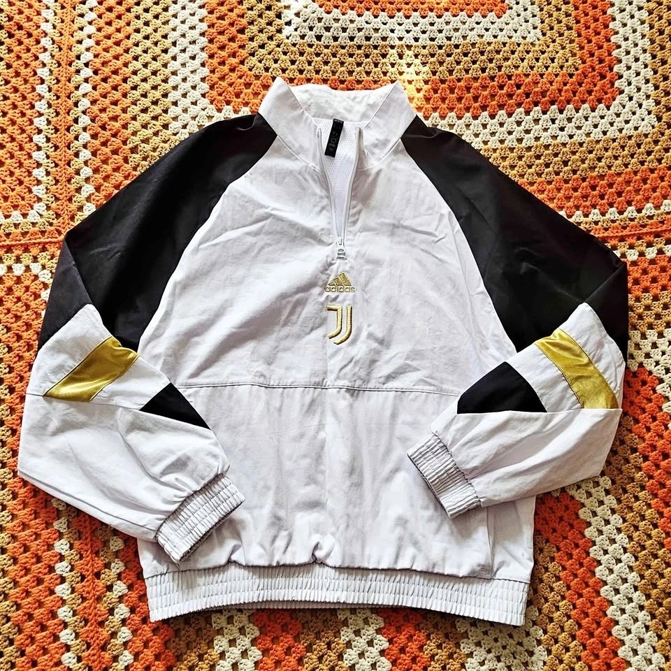 adidas juventus, juventus jacket, football warmup, soccer pullover, half zip jacket, track top, streetwear, athleisure, minimalist sport, gold logo, mens training jacket, unisex streetwear, adidas soccer