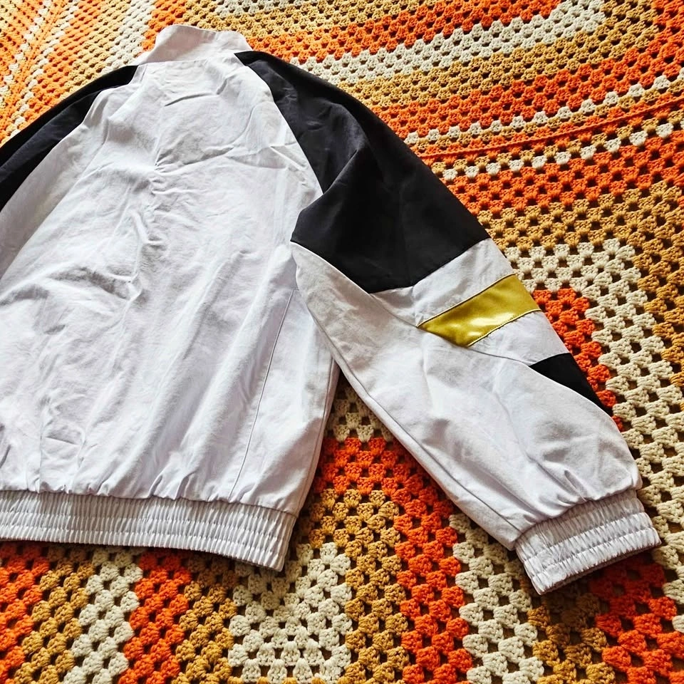 Jacket has elastic cuffs and hem and an inner mesh lining for a comfortable athletic fit. Large front kangaroo pocket with a zipper closure on each side. Outer is 100% cotton, lining is polyester. Lightweight and easy to layer — perfect for training, casual wear, or street styling.