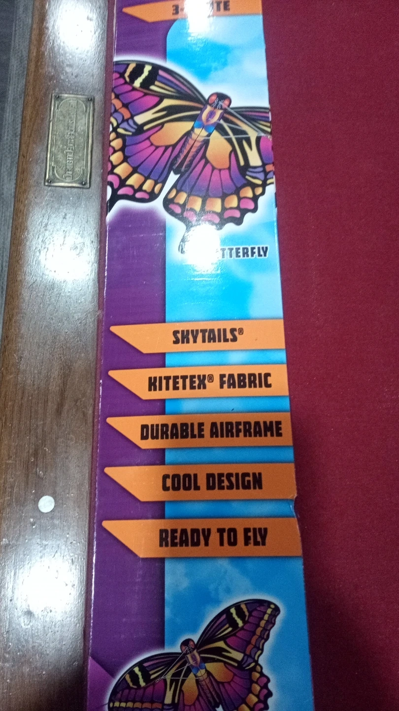 Check out this brand new Skytails Butterfly kite! It's a supersized nylon kite with a 60-inch wingspan. The kite features a durable airframe and a cool design. It's ready to fly and made with Kitetex fabric!