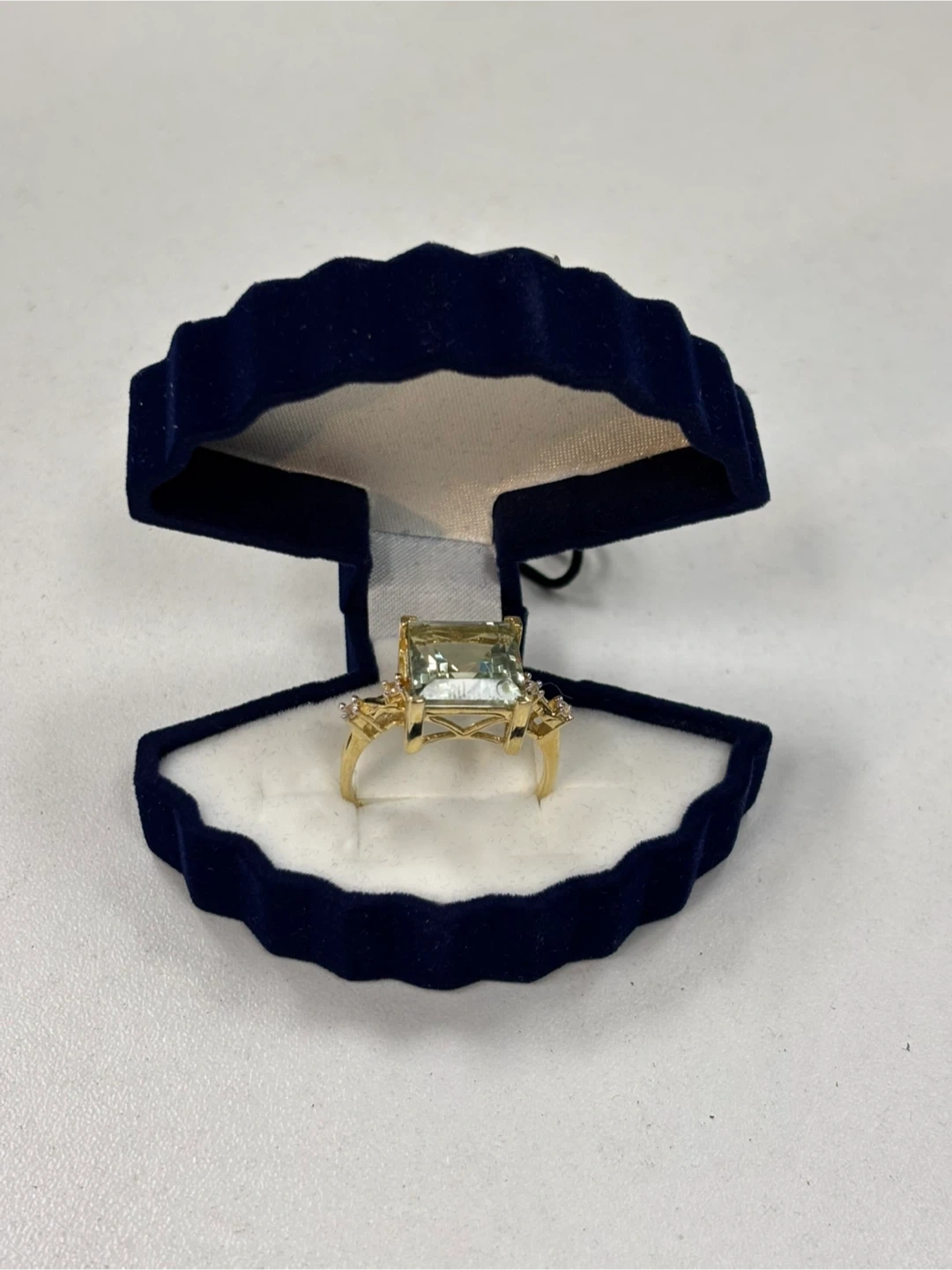 Selling a beautiful gold ring featuring a striking green stone. It comes with its original box, making it perfect for gifting or safekeeping. The ring is in great condition and ready to add a touch of elegance to any outfit