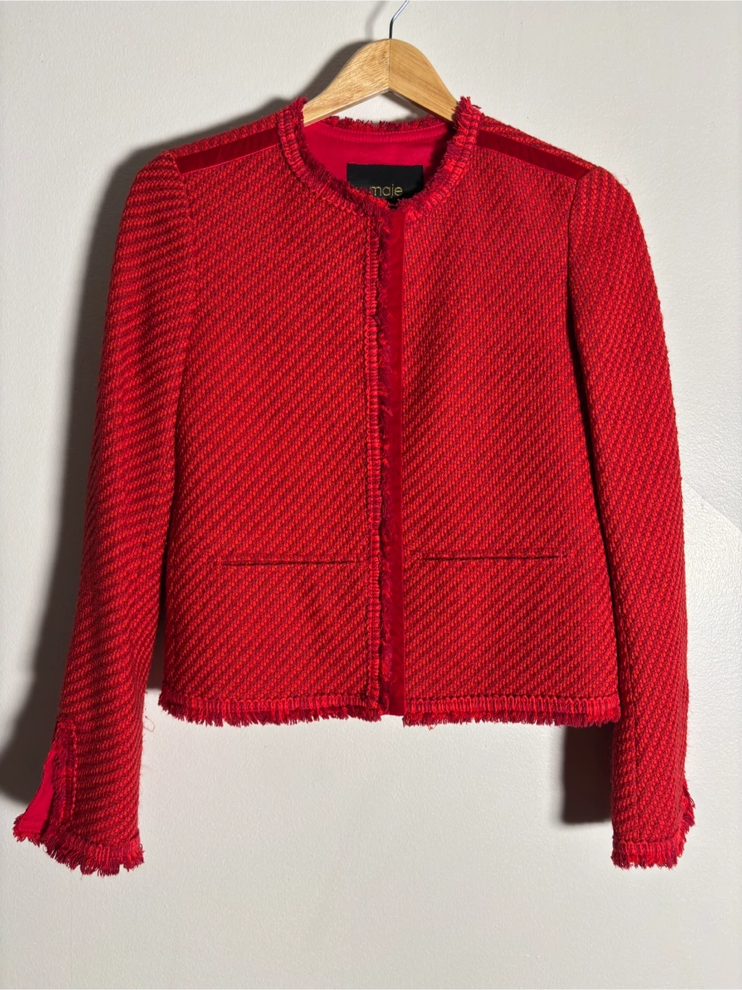 Maje Red Fringed Tweed Jacket - Act Today!