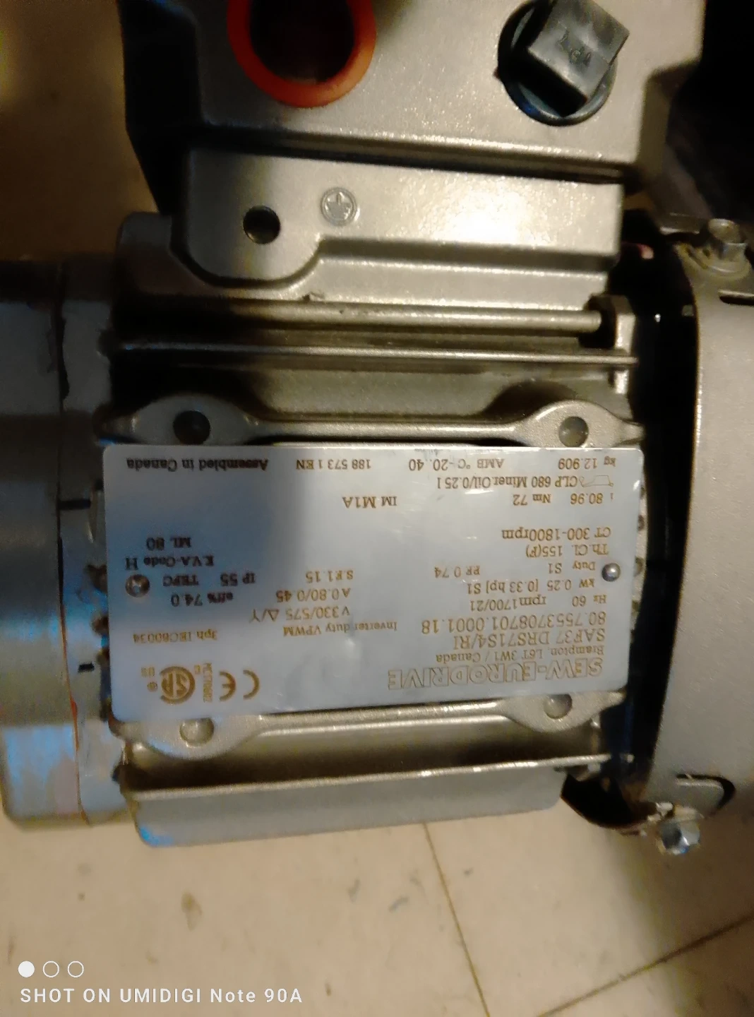 Selling a SEW-Eurodrive RAF37 DR63S4/RI gear motor. It's in good working condition and ready to be put to use.