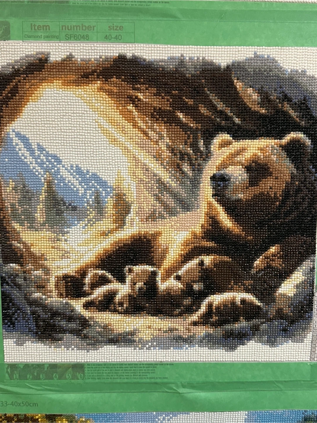 Diamond painting with a beautiful bear scene! The item number is SF6048 and the size is 40x40cm.