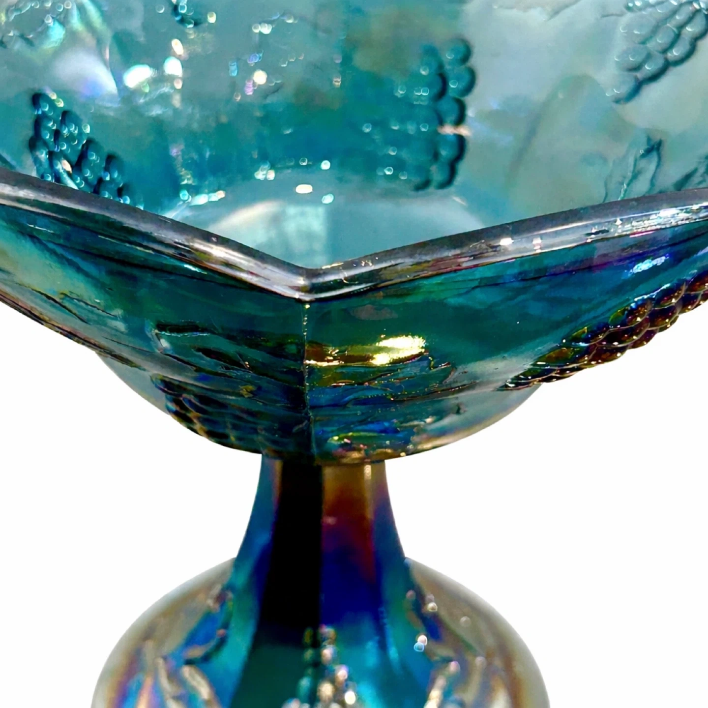 Antique Uranium Carnival Glass Grapevine Compote 7.75