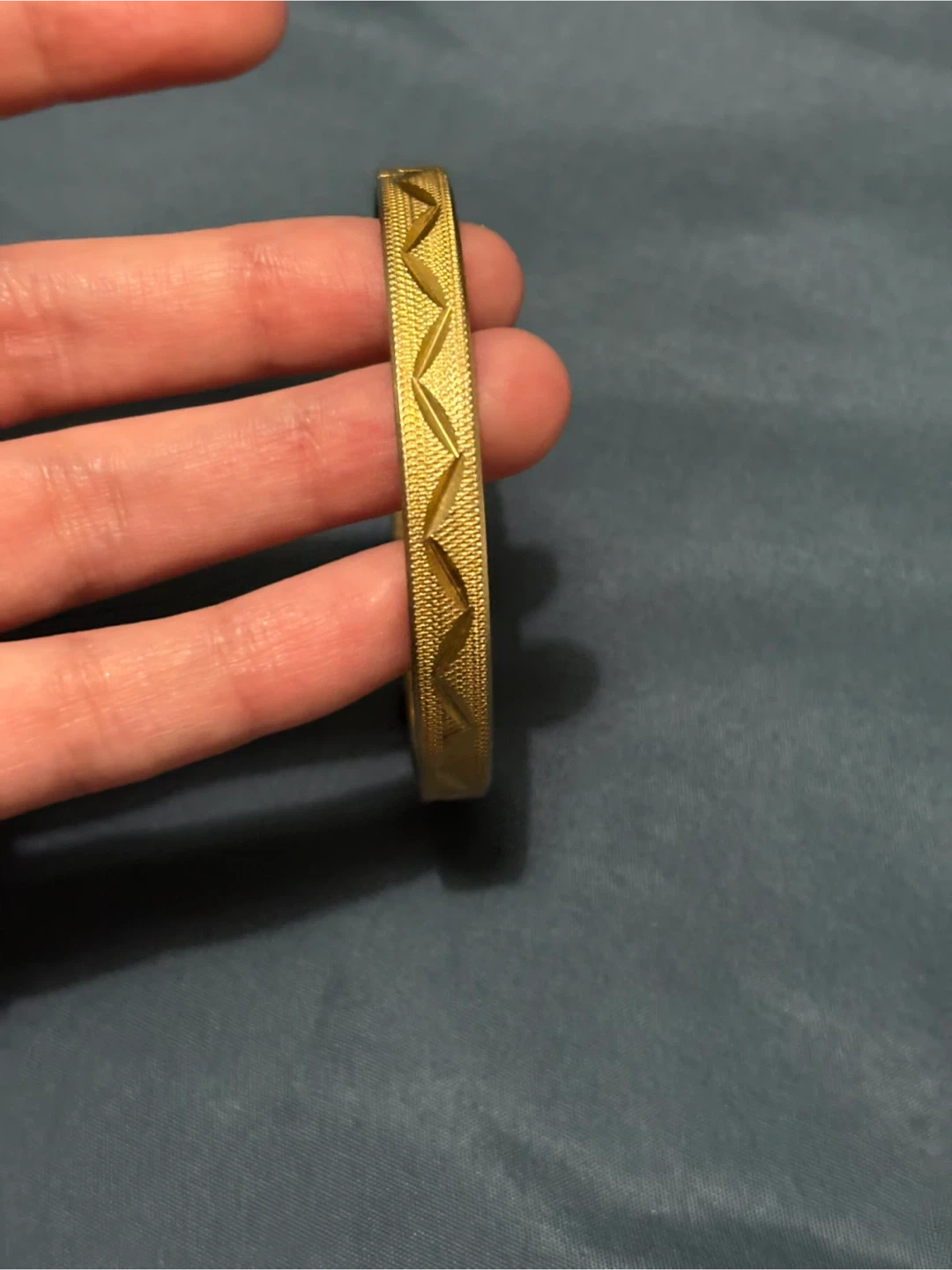 Selling a gold-toned bangle bracelet. It has a unique textured design and is in good condition. It's a stylish piece to add to your accessories!