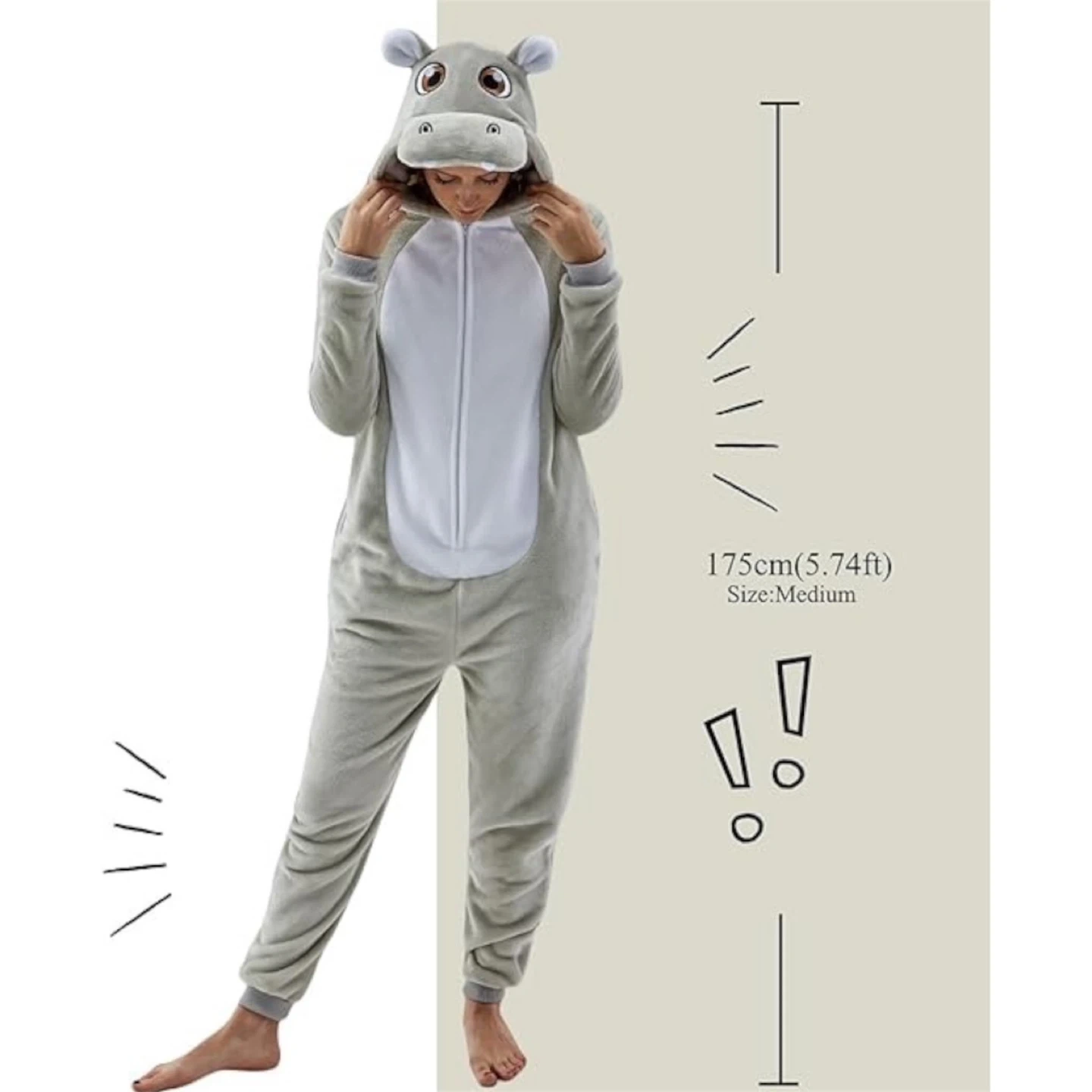 Design: Unleash your inner child with our fun and cozy animal onesie costume! The loose fit design with zipper closure allows for great relaxation and comfort. The two pockets are perfect for holding small items or keeping your hands warm.