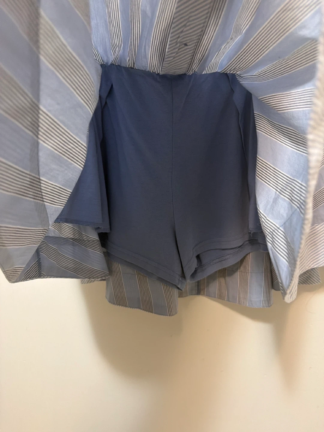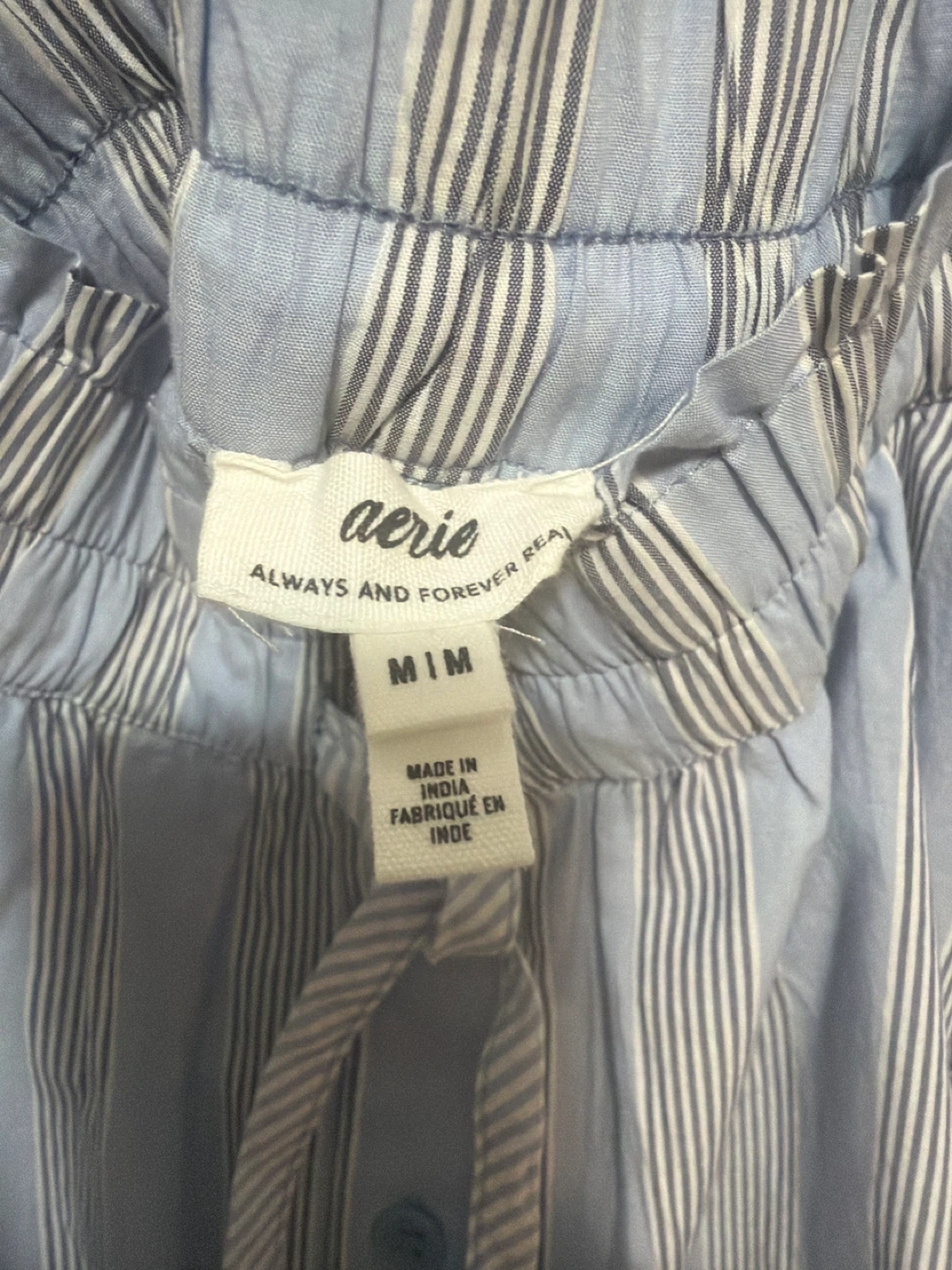 Super Cute Aerie skort in a blue and white striped pattern! It has shorts underneath, making it super comfy and practical. Has a nice flair to it and pockets!!! Size medium.
