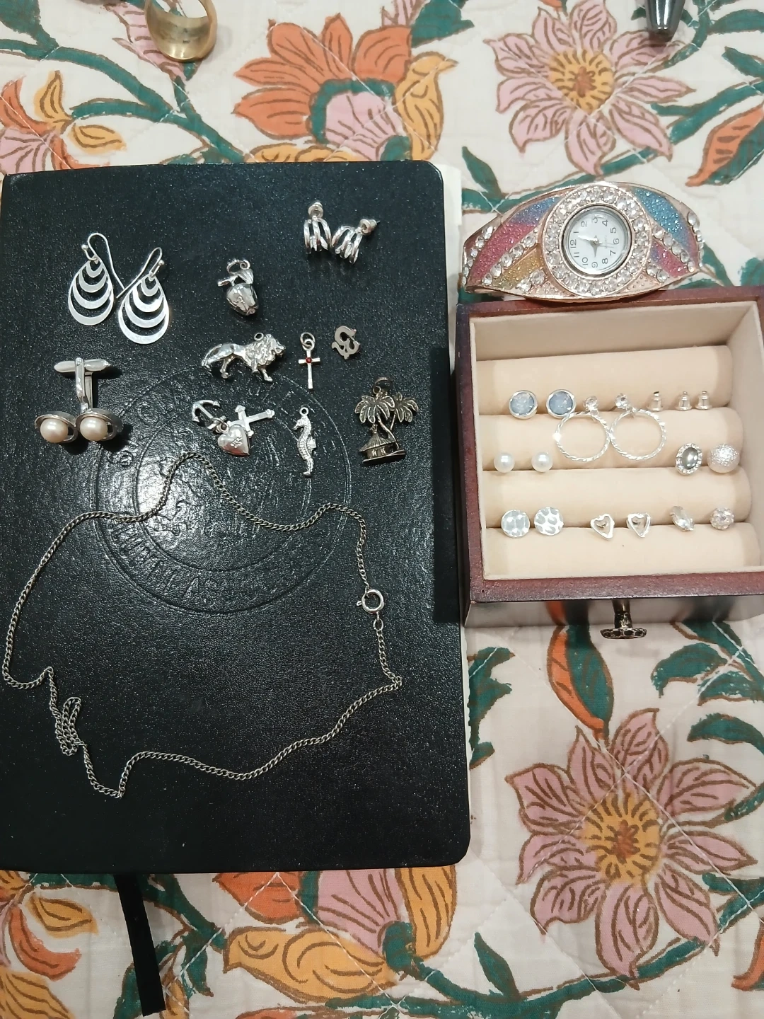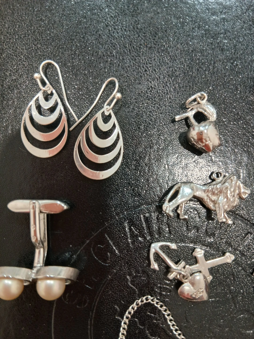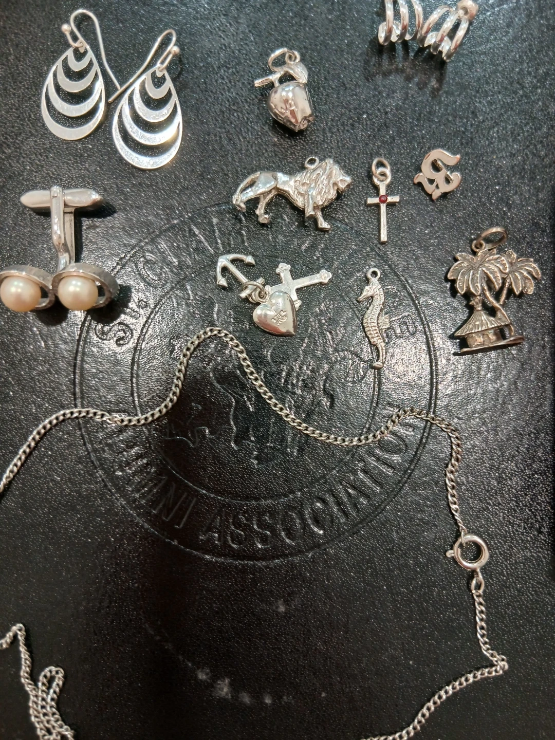 Selling a collection of assorted jewellery, including earrings, charms, cufflinks, and a chain. Perfect for adding some sparkle to your everyday look!