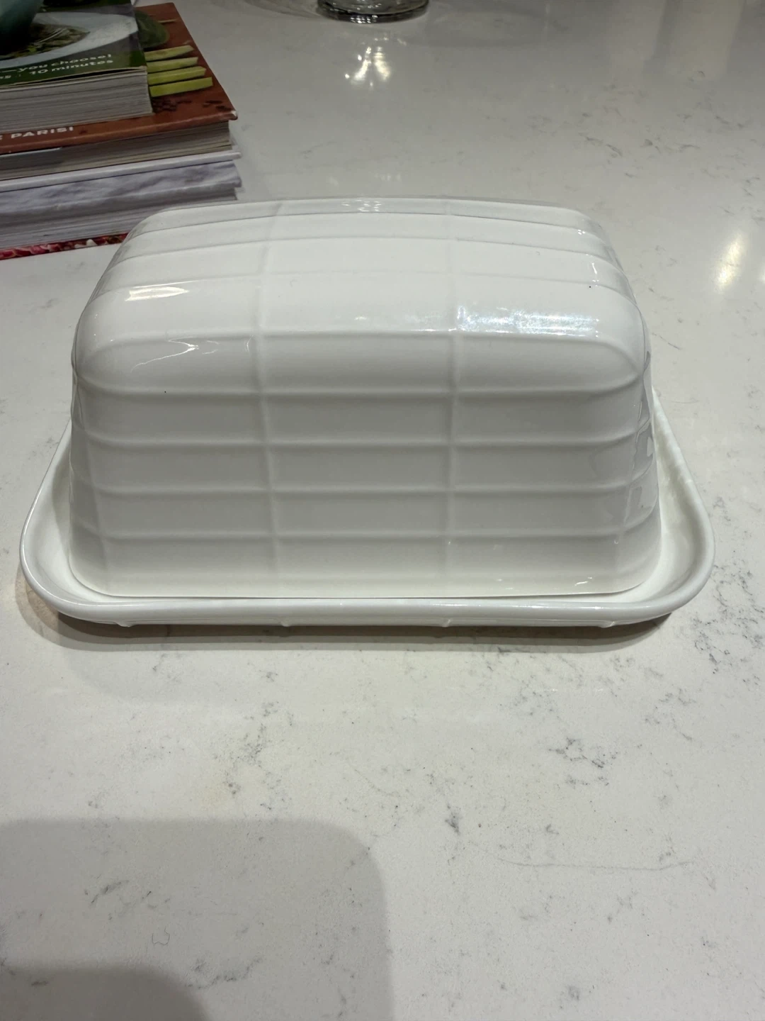 Selling a simple and elegant white ceramic butter dish. It comes with a lid to keep your butter fresh.