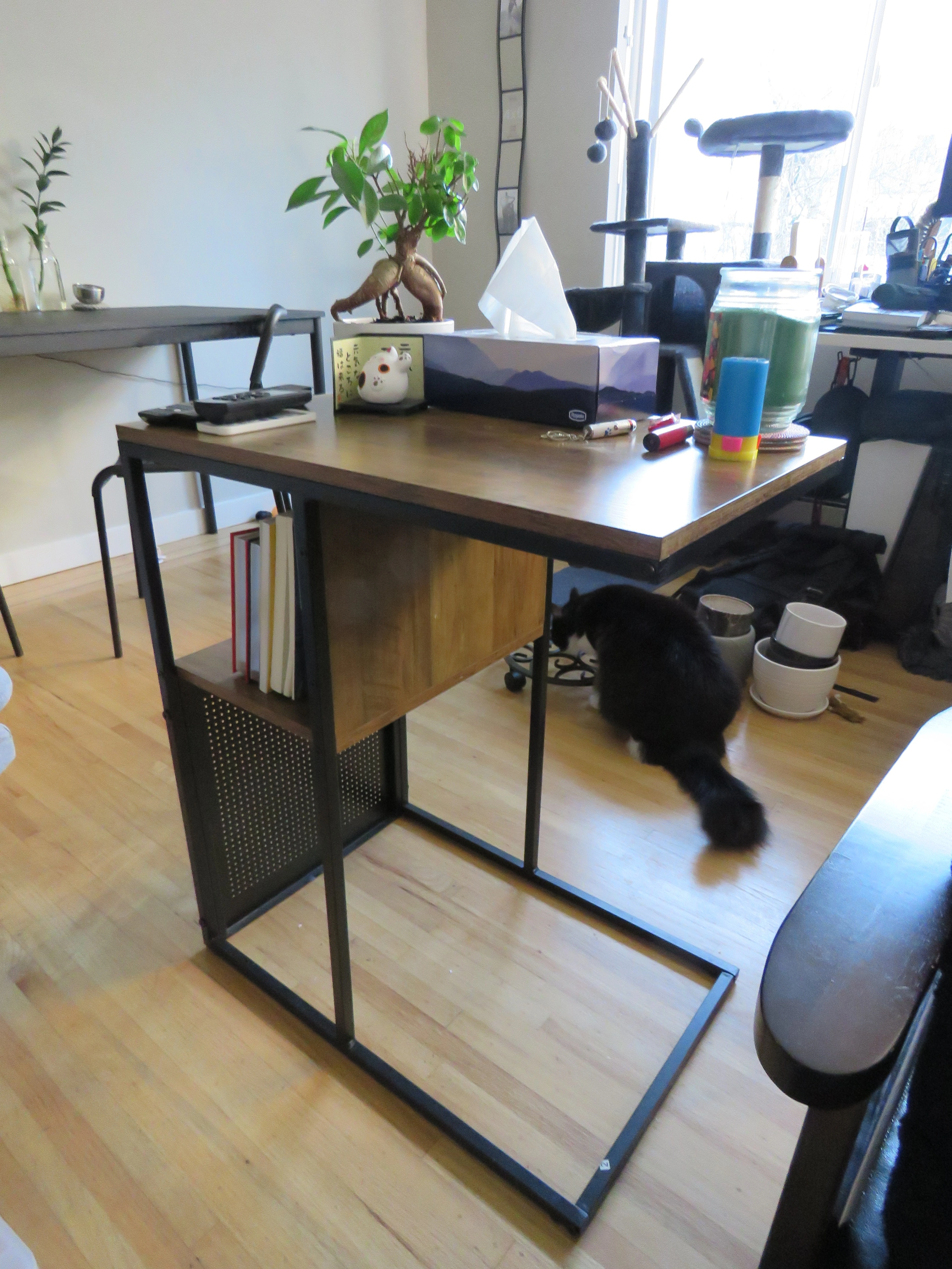 Modern coffee table with wood top and black metal frame. Solid, stable, and great for living rooms or small spaces. Industrial-style design that fits well with modern or minimalist decor.