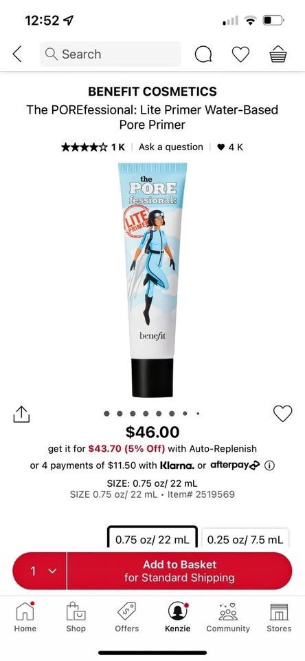 Benefit Cosmetics - The POREfessional: Lite Primer Water-Based Pore Primer. Size: 22ml / 0.75 fl oz. Selling because it was sent by mistake. Offering at 20% off the original price before tax. Please let me know if you want any more photos of the product!