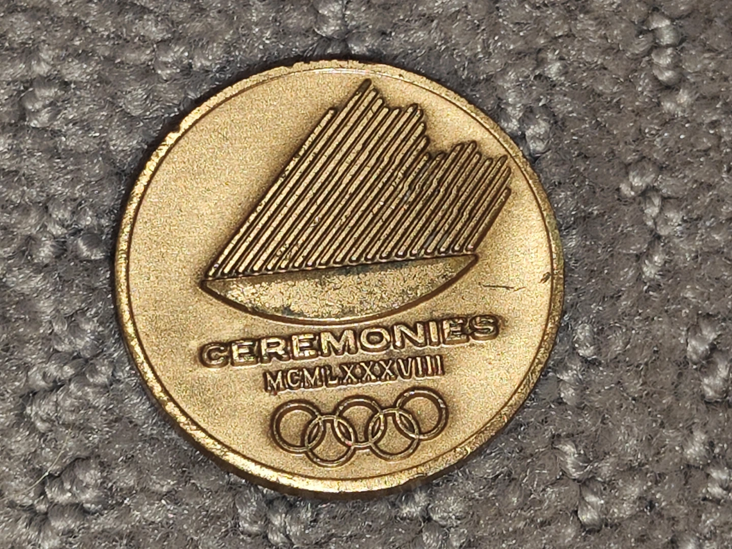 I am selling a 1988 Calgary Olympic Winter Games Ceremonies Participation Medallion Coin in good condition. A unique piece of Calgary history: an official 1988 Winter Olympics Ceremonies Participation Medallion. Unlike the standard participation medals, this specific version was issued for the Opening and Closing Ceremonies to volunteers, staff, and performers who participated specifically in the Opening and Closing Ceremonies at McMahon Stadium and Olympic Plaza.