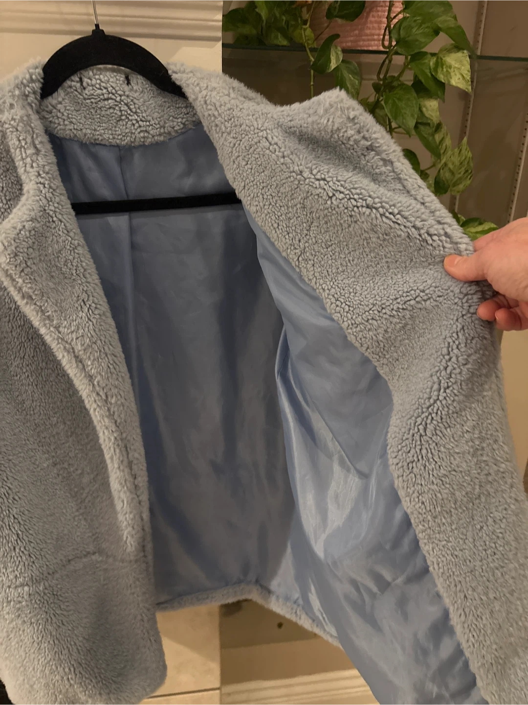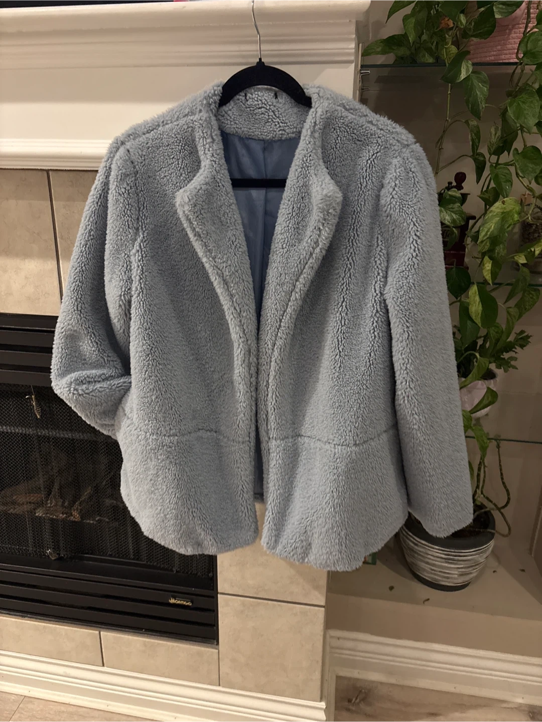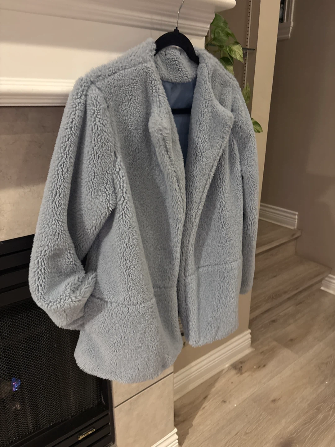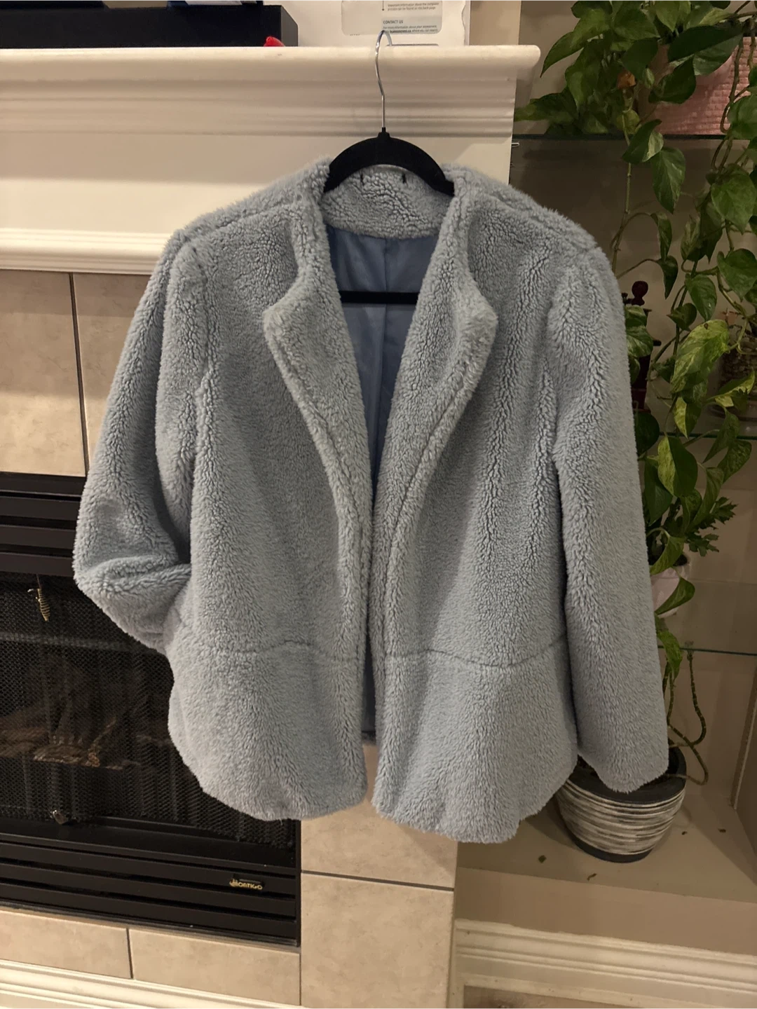 Selling a cozy light blue sherpa jacket! It's in great condition and perfect for layering on chilly days. The jacket features a soft sherpa exterior and a smooth lining. It has a relaxed fit and is super comfortable to wear size L pick up walnut grove Langley