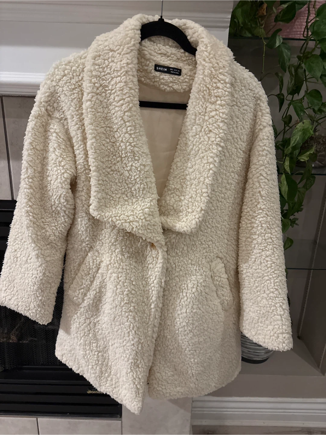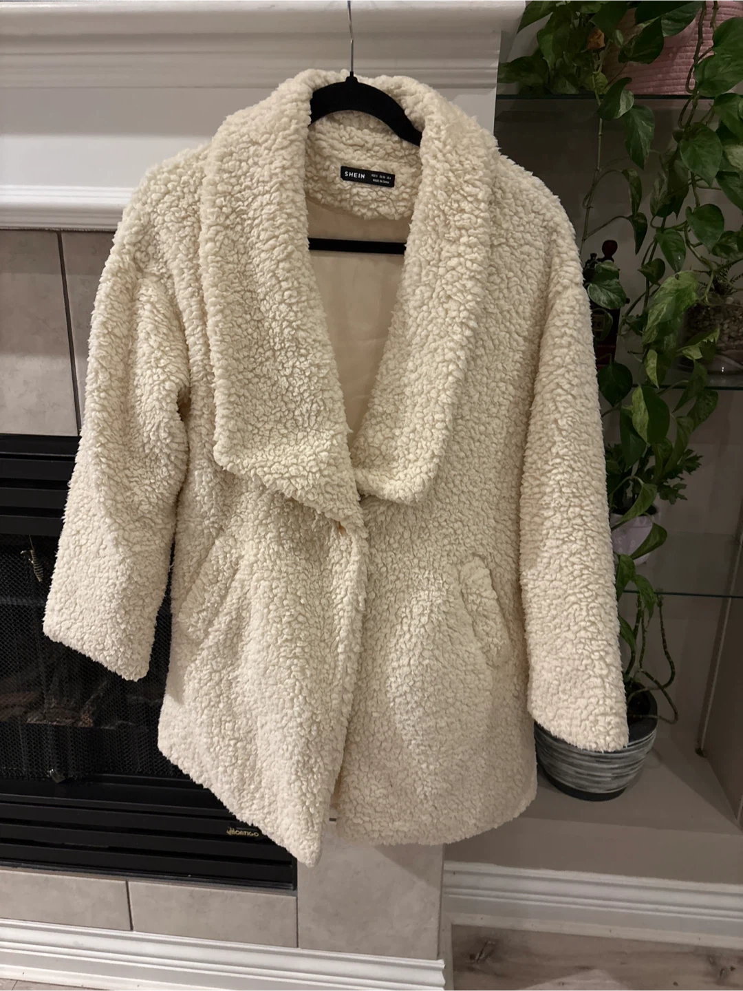 Cozy up in this cream-coloured sherpa jacket from SHEIN! It's a size XS and perfect for layering during those chilly Canadian evenings. The soft, plush material will keep you warm and stylish