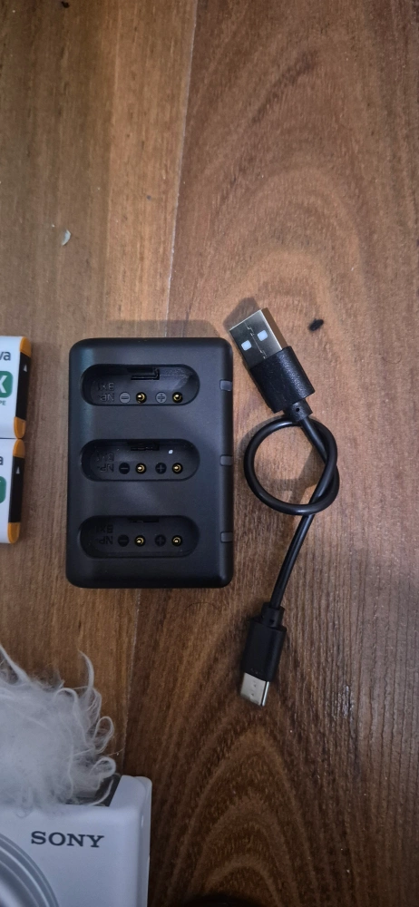 I have a sony camera in pretty well condition it comes with 1 sony battery and 3 newmowa batteries with a charger aswell comes with lenses cover and usb c cable. No sd card or sd card reader
