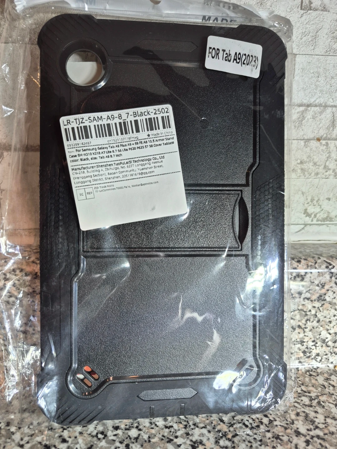 Selling a brand new black case for the Samsung Galaxy Tab A9 (2023). It's still in its original packaging. This case is designed to provide robust protection for your tablet. The package includes an installation guide to help you set it up easily. Perfect for keeping your tablet safe from bumps and scratches!