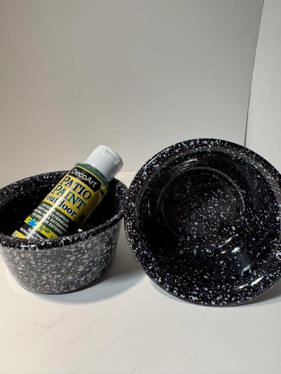 Color/Pattern: A black base with white speckles, often referred to as graniteware style in similar products.
