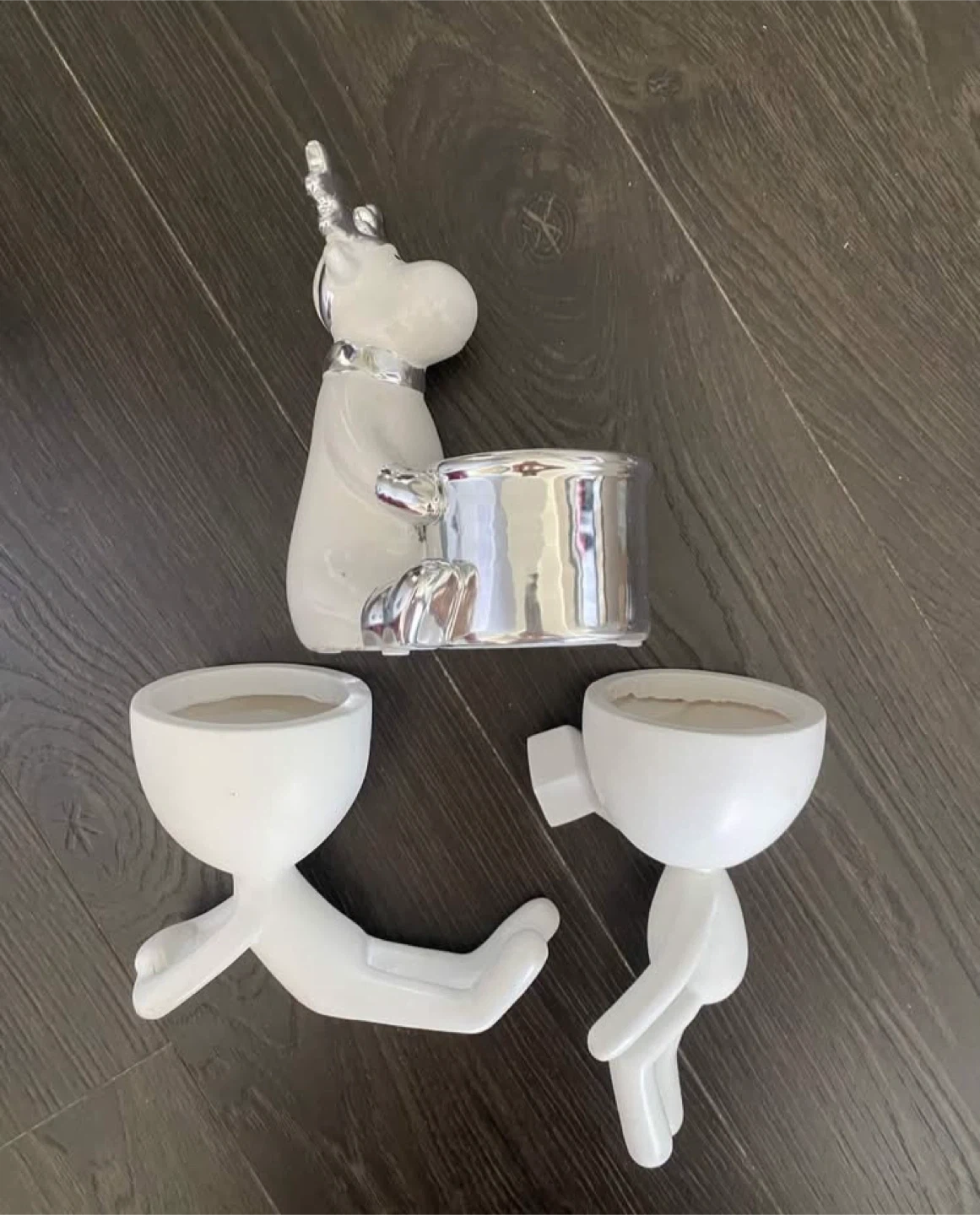 Selling a cute set of white ceramic planters! Includes a reindeer planter and two human-shaped planters. They are in great condition and ready to add some charm to your home or garden