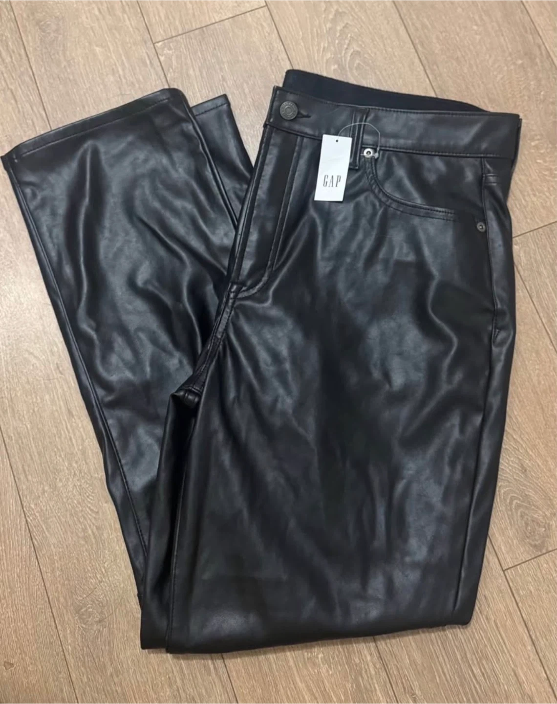 Selling a pair of Gap faux leather pants in size 32/14R. They're in great condition and have a stylish look. These originally retailed for $109.95.