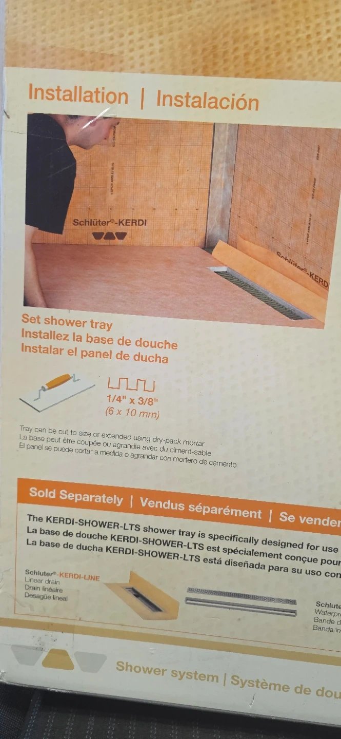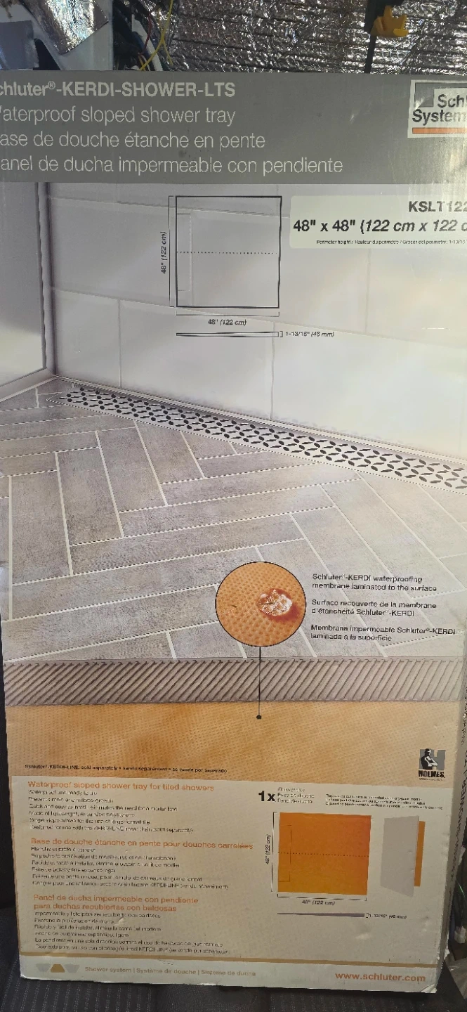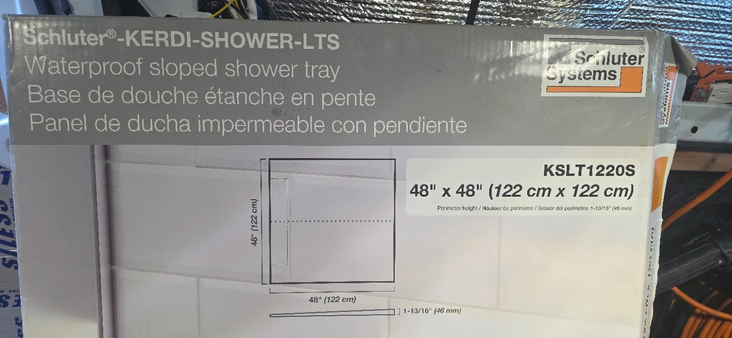 Selling a Schluter Kerdi Shower-LTS waterproof sloped shower tray. It's 48" x 48" (122 cm x 122 cm). Great for creating a waterproof shower base!