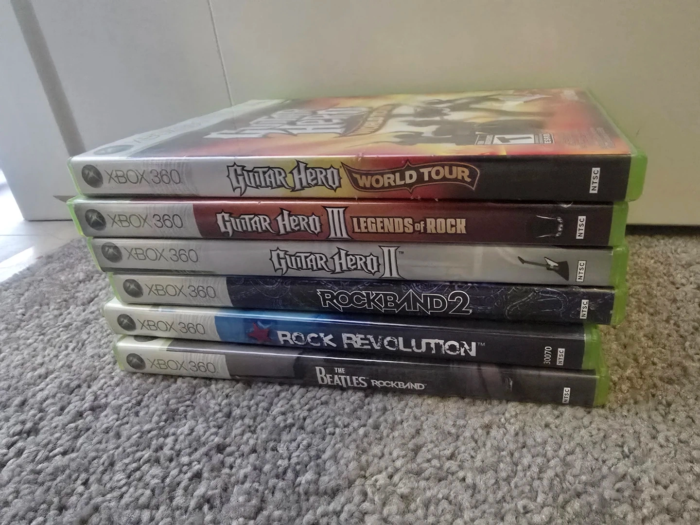 Offical Xbox 360 Wired Drum Set, Guitar & Games $8+