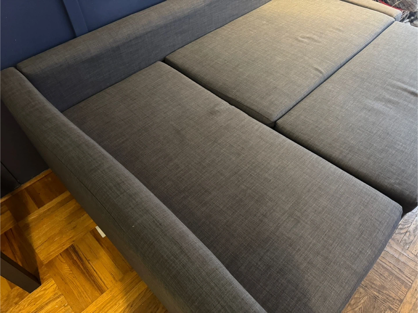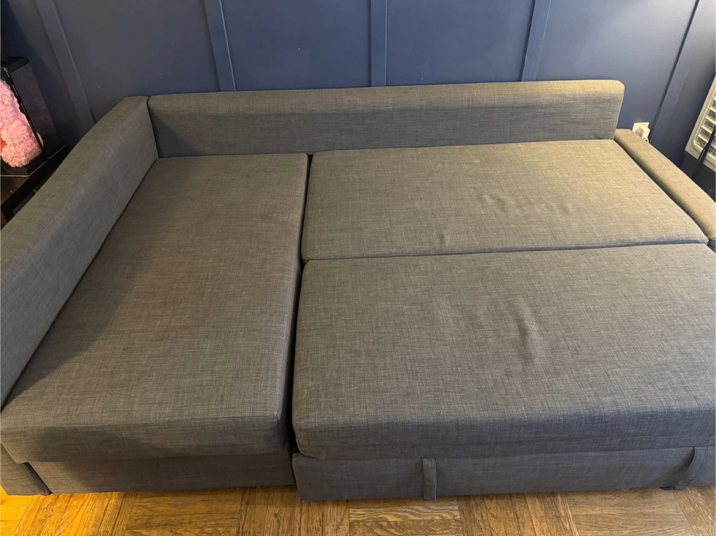 Selling a modern grey L-shaped sofa bed in excellent condition. Very comfortable and clean, well maintained in a smoke-free home. Easily converts into a bed, perfect for guests or small apartments. Sturdy frame, firm cushions, and smooth pull-out mechanism.