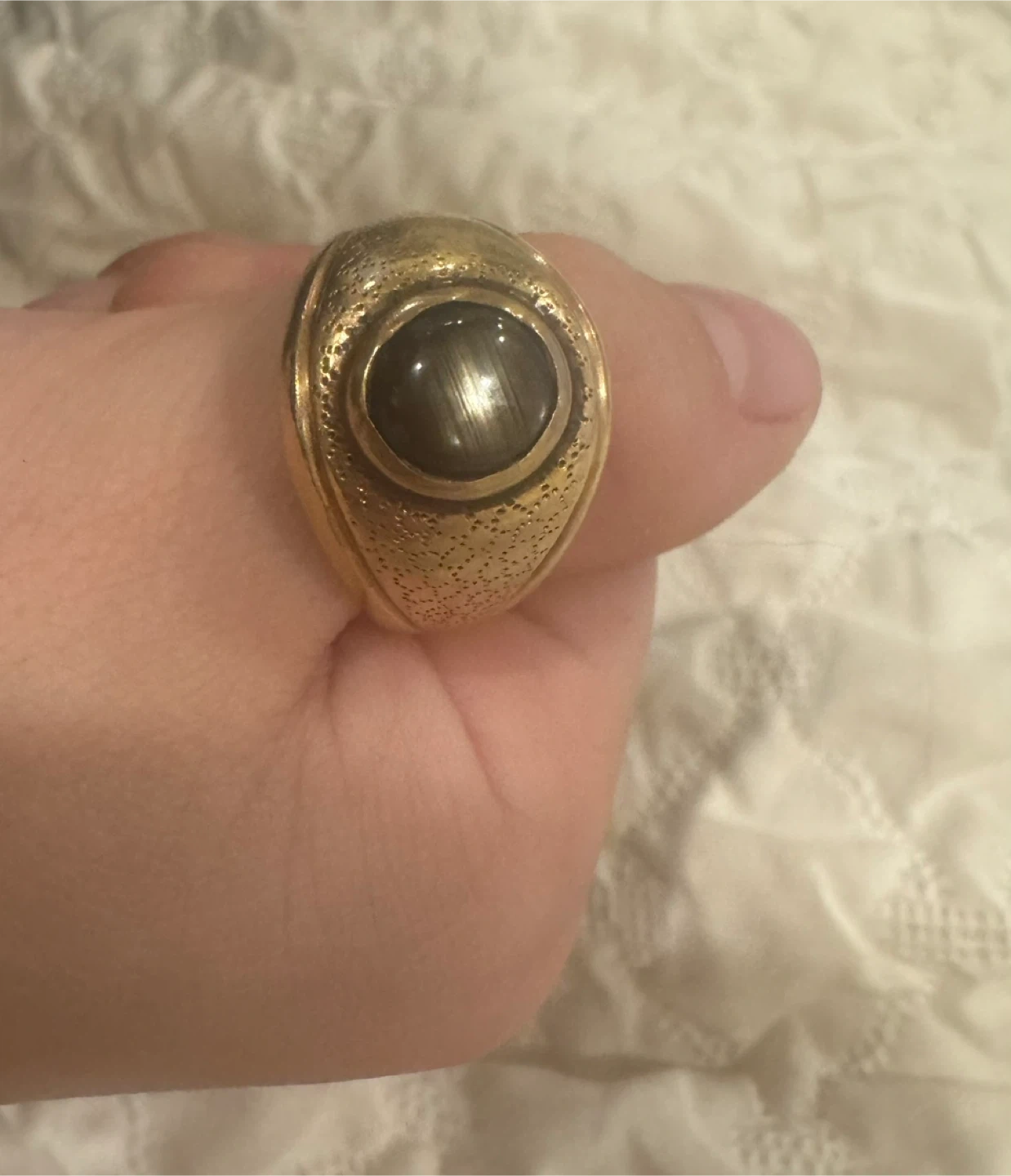 Selling a beautiful gentlemen's ring! It's crafted from 14K gold and features a striking black star sapphire. A classic piece that's sure to catch the eye