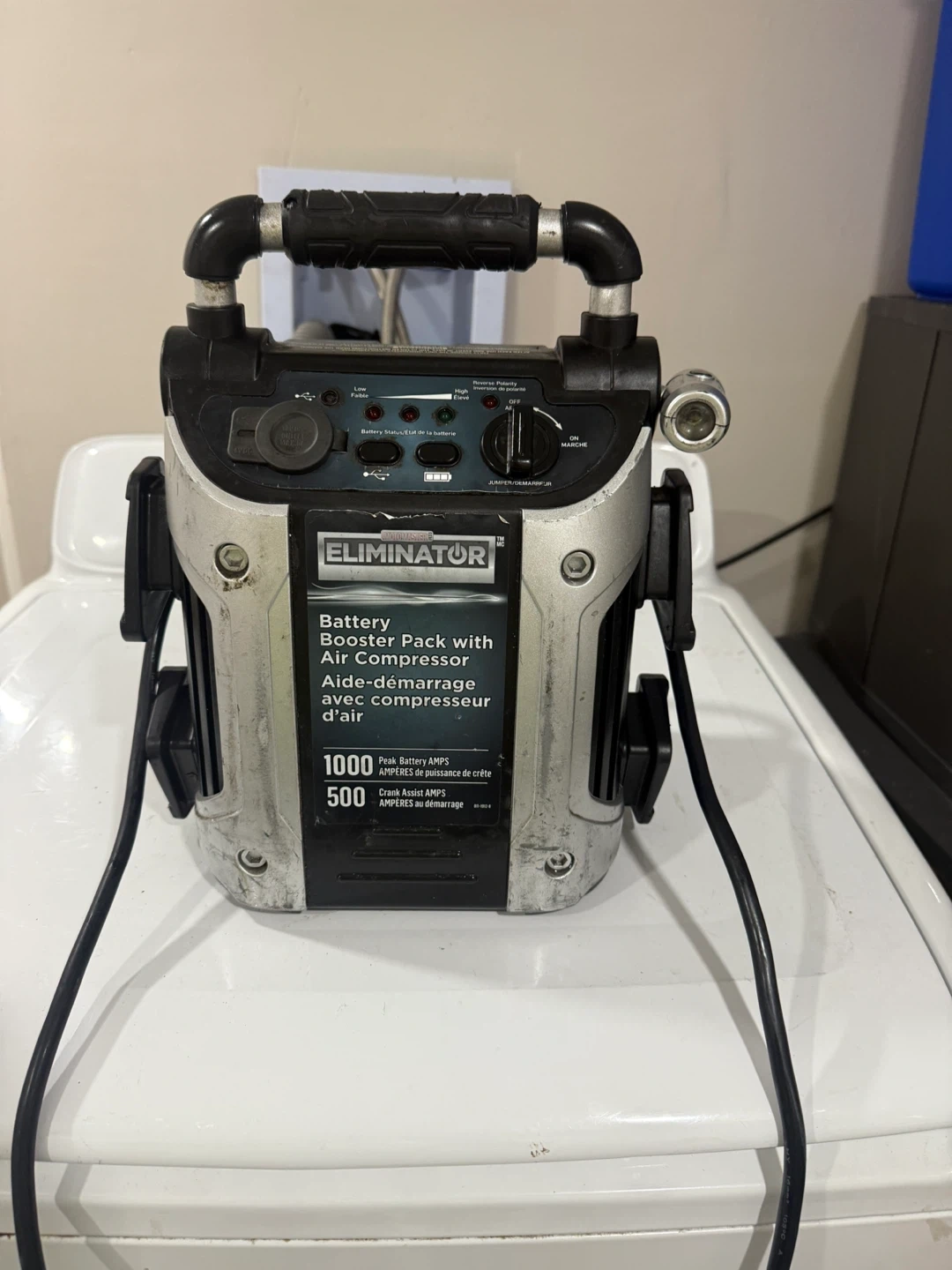 Selling an Eliminator Battery Booster Pack with Air Compressor. It's in good working condition and ready to help you out in a pinch! It features: