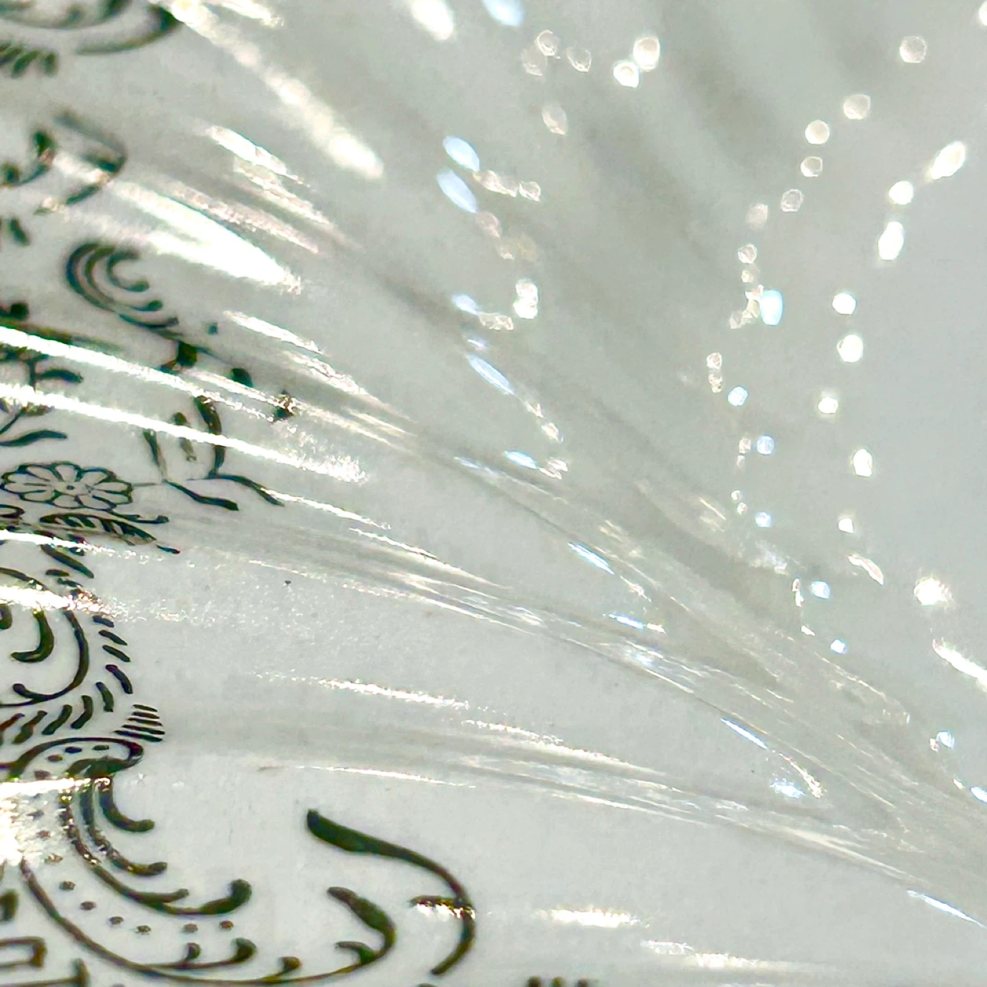 • Motif: Regency-inspired scrollwork with floral flourishes and fine linear banding.
