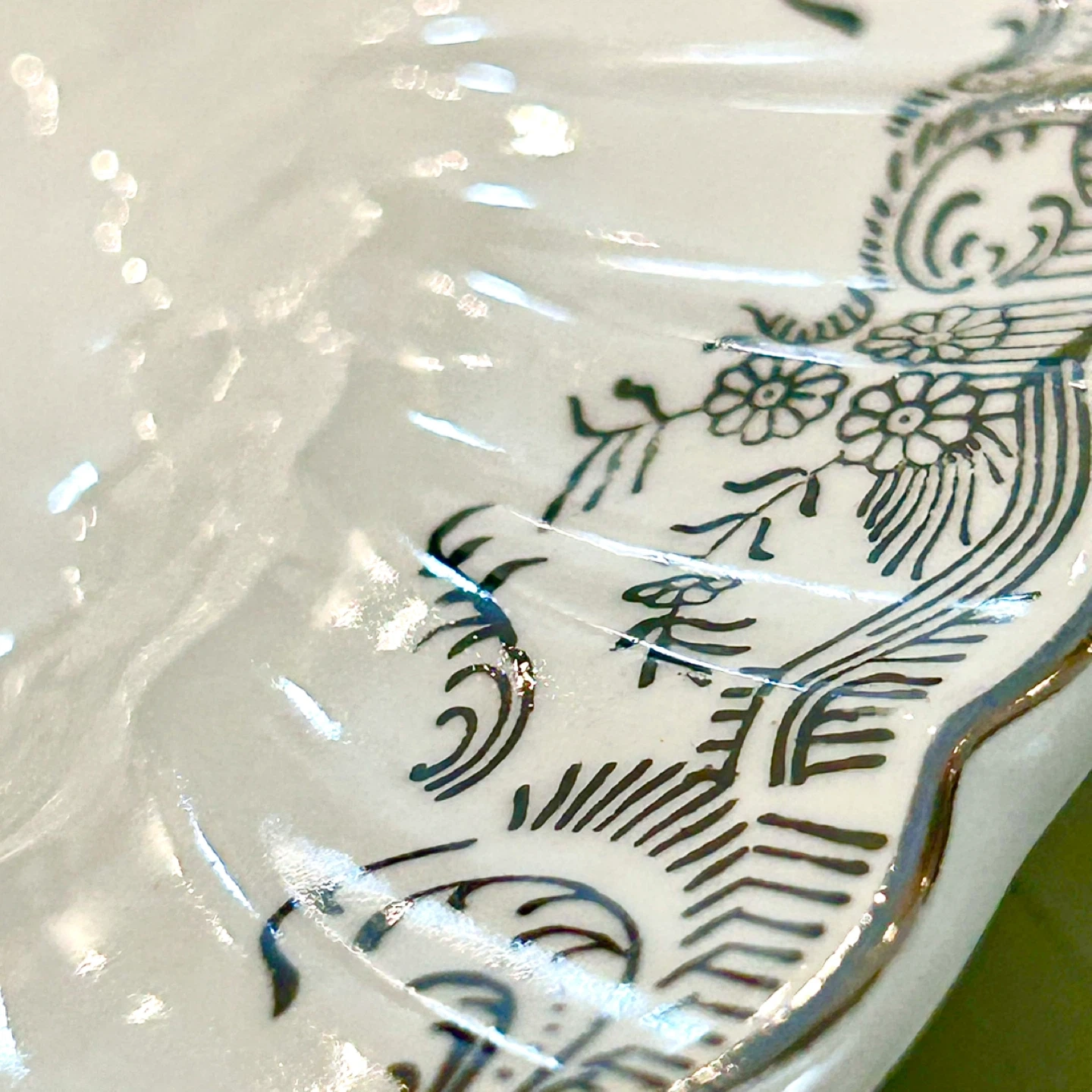 • Form: Oval platter with gently scalloped edge and subtly molded surface, giving depth and light play without overpowering the table.