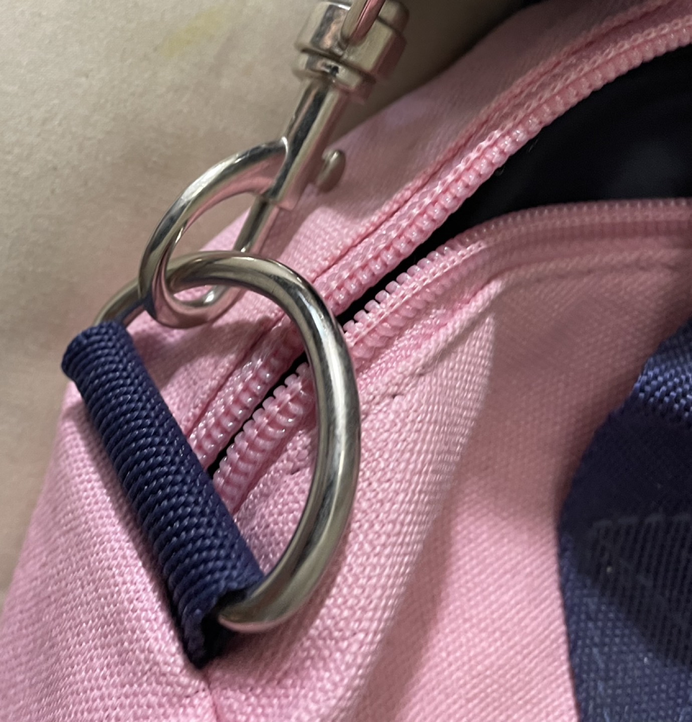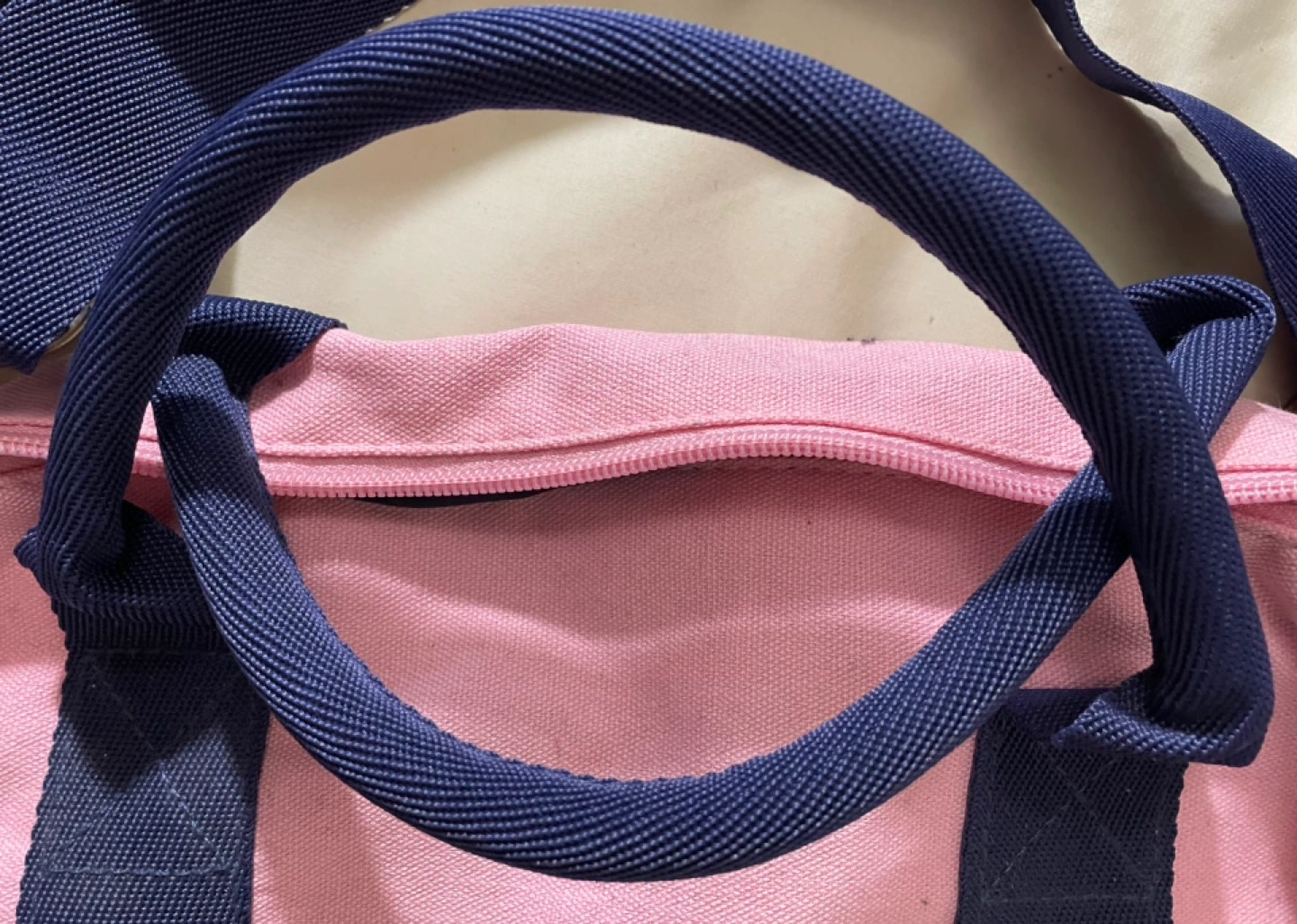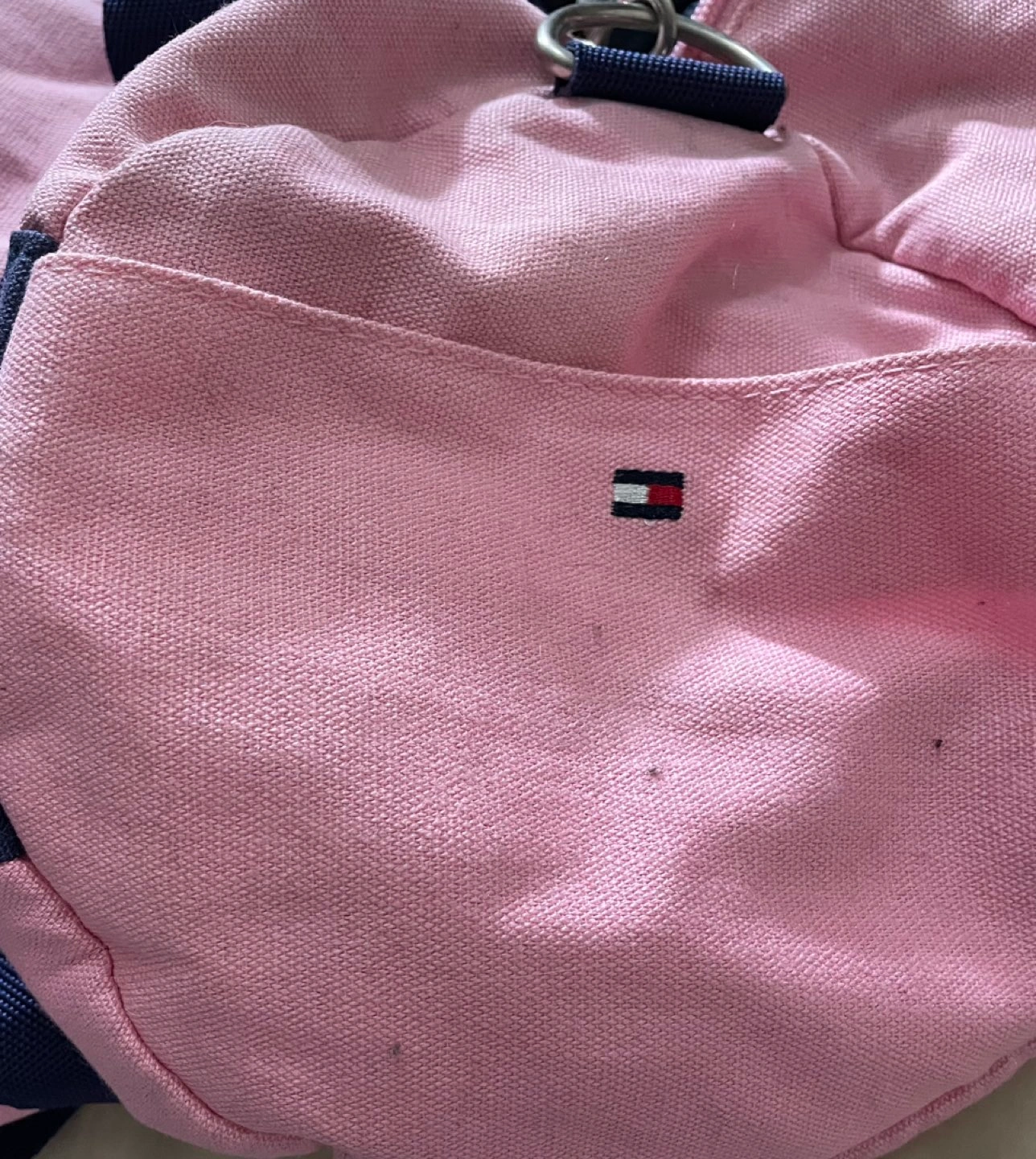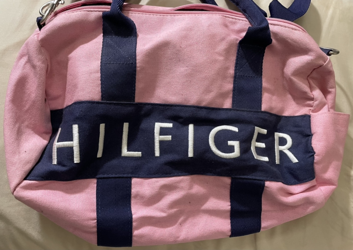 Tommy Hilfiger gym bag with centre compartment and a side pocket only used one month pink with navy blue accents
