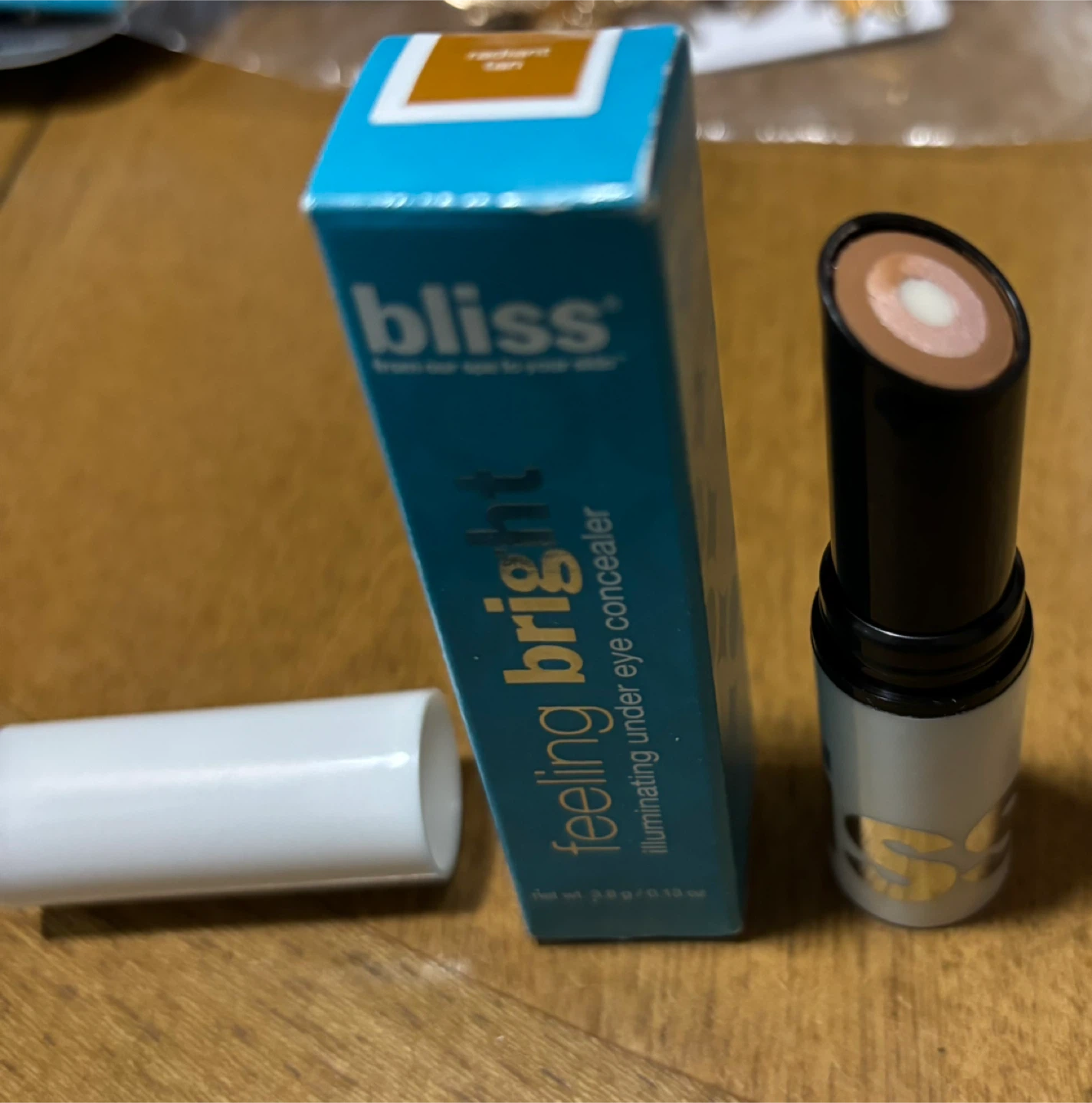 I'm selling a Bliss Feeling Bright illuminating under eye concealer! It's in the radiant tan color and contains 3.8g / 0.13 oz of product