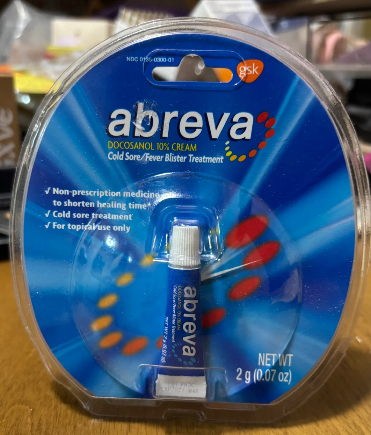Selling a new Abreva Docosanol 10% Cream for cold sore/fever blister treatment! The net weight is 2 g (0.07 oz), and the expiration date is 2027 March.