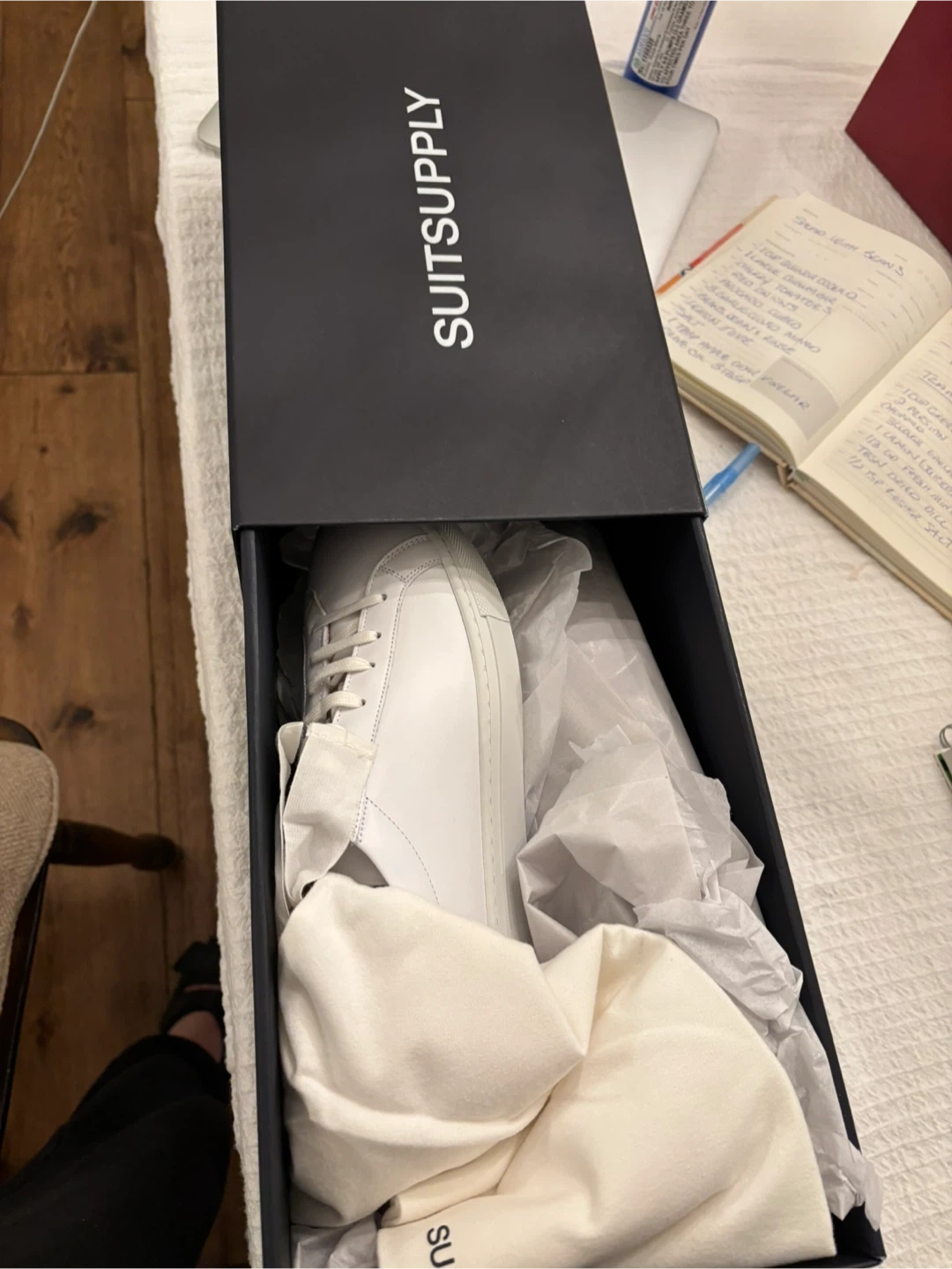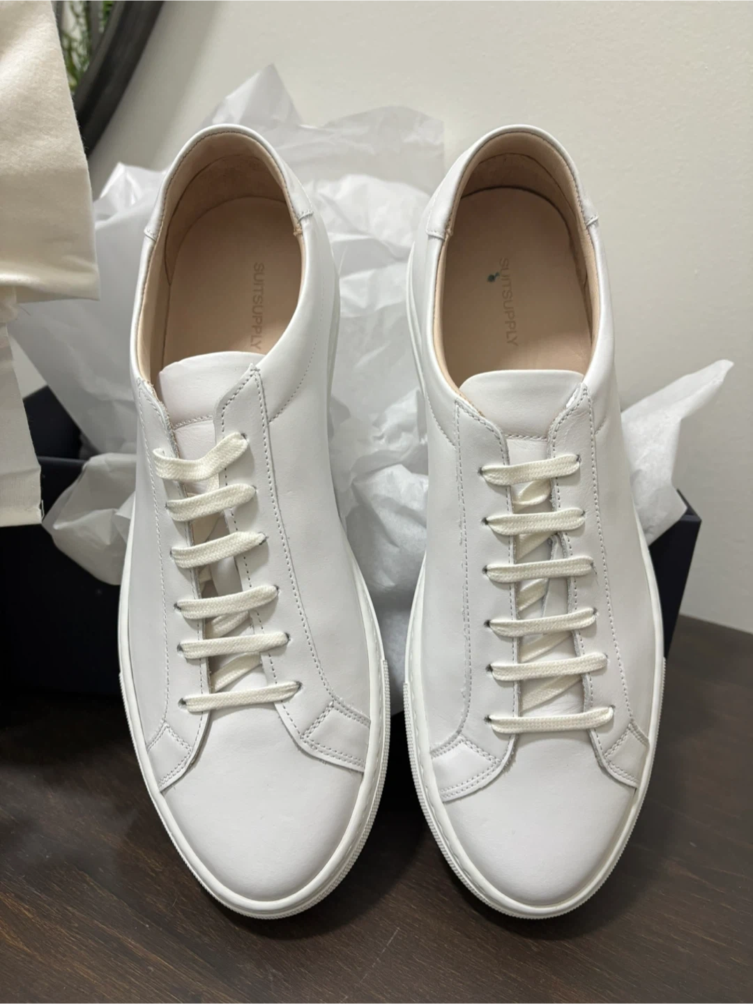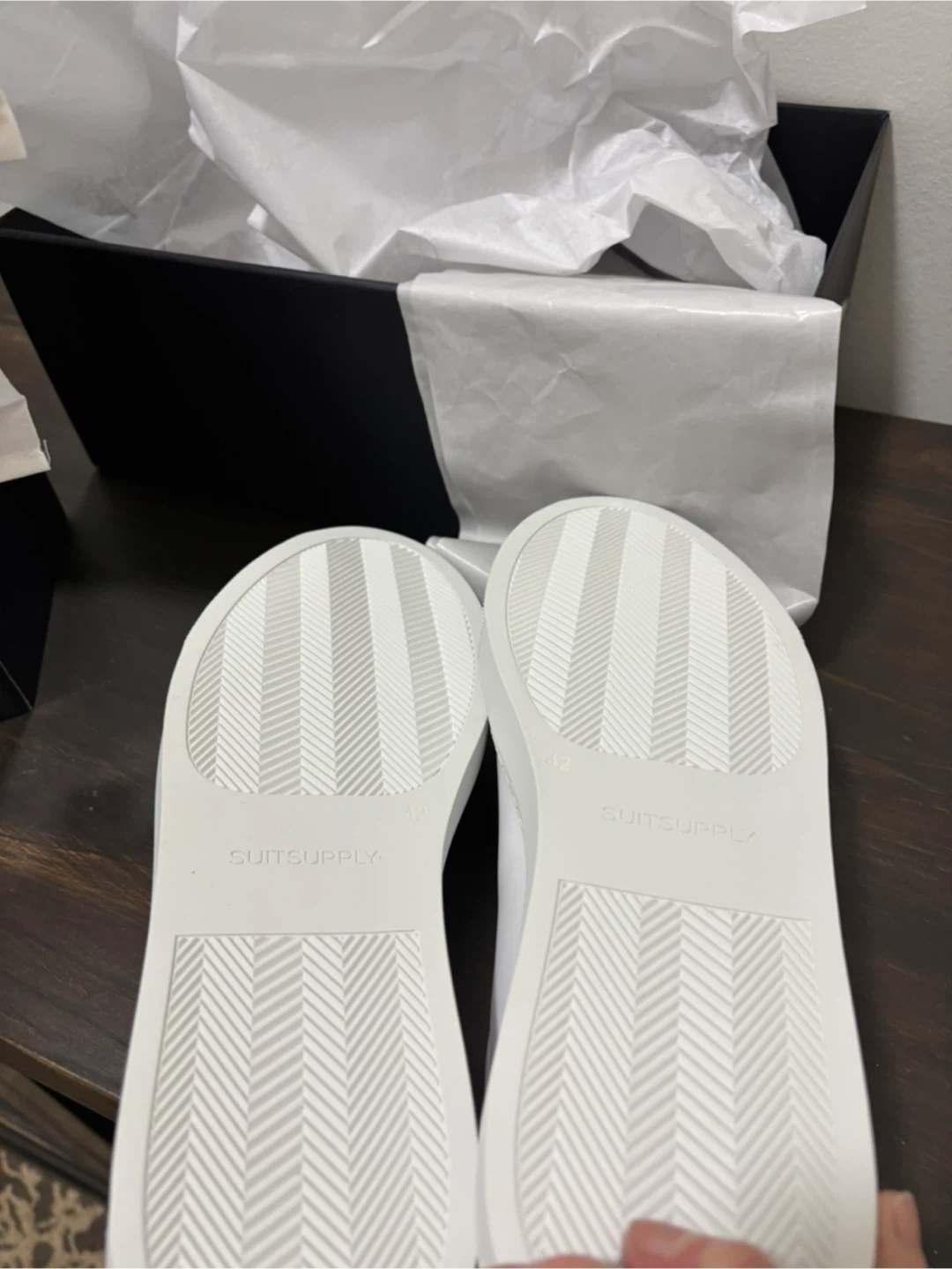 Selling a brand new pair of Suitsupply sneakers! These are a clean, classic style in all-white leather. They are a size 42. Comes with the original box and dust bag!