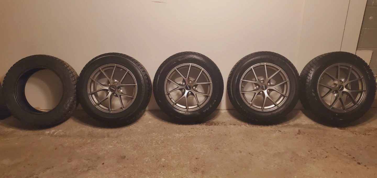 Selling a set of winter tires mounted on rims! They're in good condition and ready to go for the winter season. Great for providing extra traction and safety in snowy and icy conditions