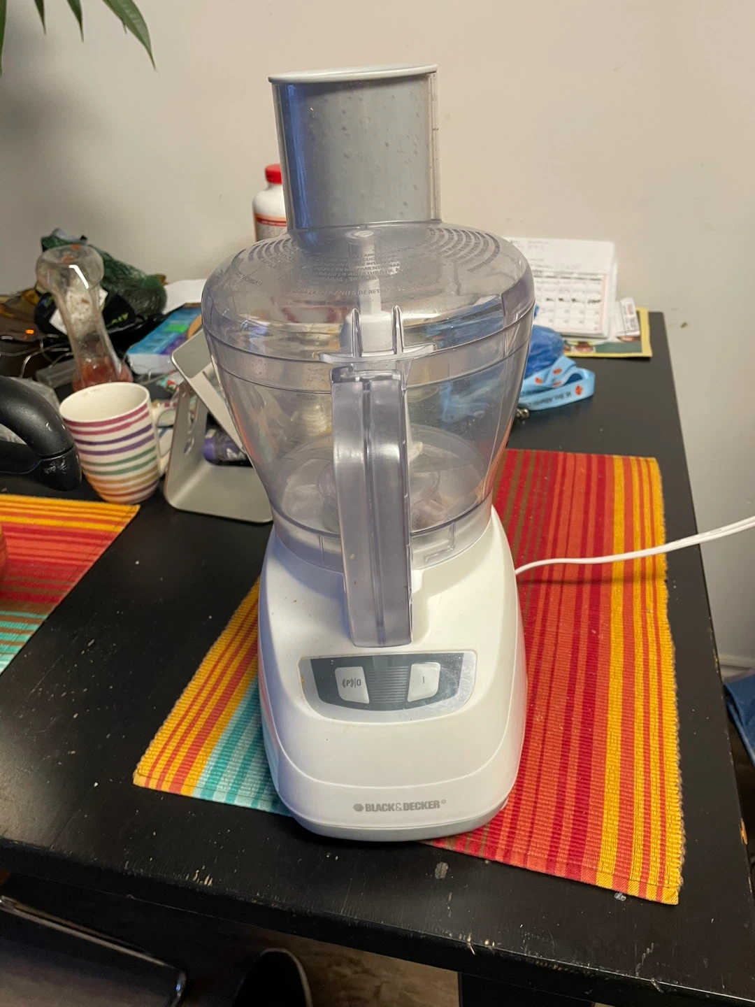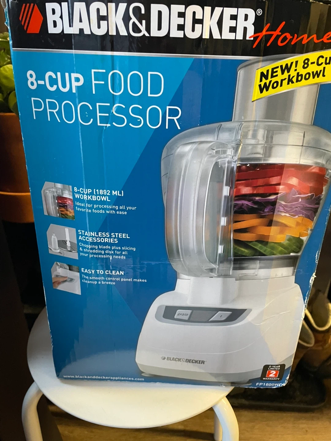 Selling a Black & Decker 8-cup food processor. It's in excellent condition and comes with the box! The work bowl has a capacity of 8 cups (1892 ml), perfect for all your favourite foods. It also includes stainless steel accessories for chopping, slicing, and shredding. Plus, it's easy to clean!