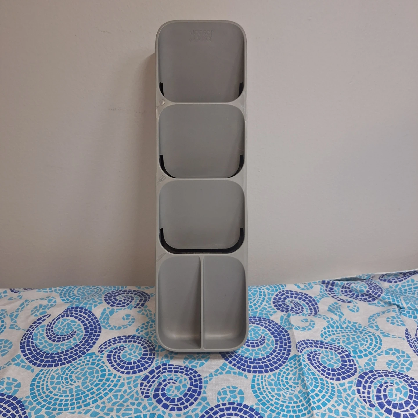 Declutter your drawers with this Joseph Joseph cutlery organizer! It's a grey, space-saving solution for keeping your silverware neat and tidy. Perfect for any kitchen looking to maximize storage