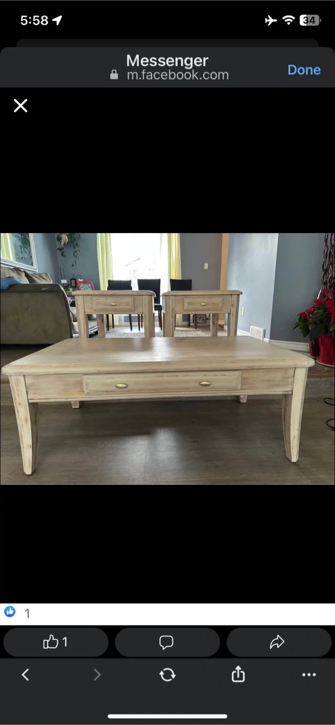 Selling a set of furniture that includes a coffee table and two matching end tables. They're in good condition and would look great in any living room! The tables have a neutral colour and a classic design.