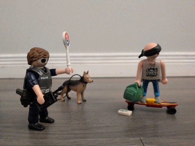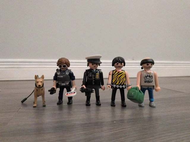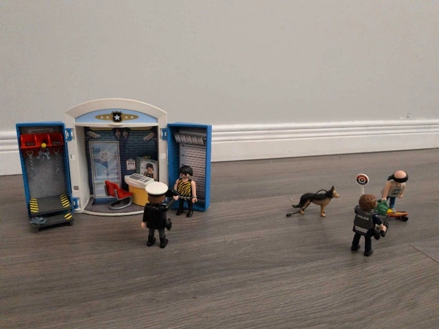 Get ready for high-speed chases and daring arrests with this Playmobil Police Station playset! This set is in good condition and ready for action. It includes the police station building, several police officer figurines, a K-9 unit, and a couple of ne'er-do-wells to apprehend. Perfect for sparking imaginative play and creating thrilling law enforcement scenarios. The set is fairly new with very little to no signs of play, and all pieces are present and ready for new adventures. Includes police station building, multiple police officer figurines, K-9 unit dog, and assorted accessories. Cash accepted.